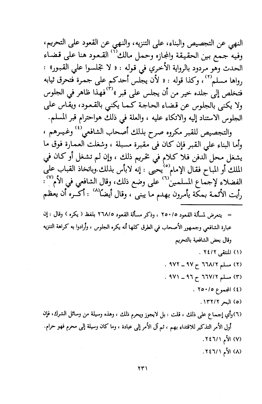 = يتعرض لمسألة القعود 5/ 250، وذكر مسألة القعود 5/ 268 بلفظ (يكره) وقال: إن عبارة الشافعي وجمهور الأصحاب في الطرق كلها أنه يكره الجلوس، وأرادوا به كراهة التنزيه وقال بعض الشافعية بالتحريم.