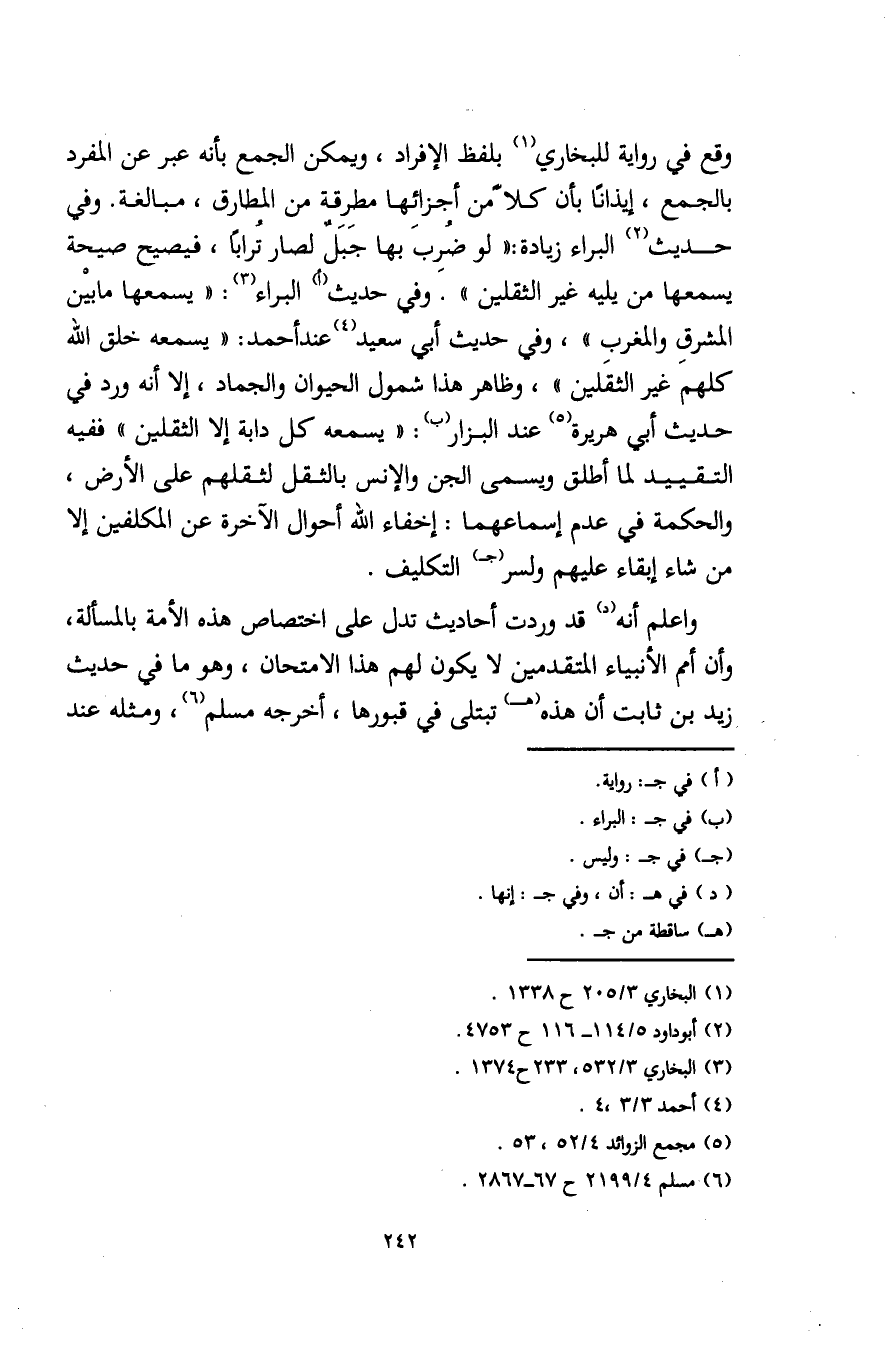 واعلم أنه (د) قد وردت أحاديث تدل على اختصاص هذه الأمة بالمسألة، وأن أم الأنبياء المتقدمين لا يكون لهم هذا الامتحان، وهو ما في حديث زيد بن ثابت أن هذه (هـ) تبتلى في قبورها، أخرجه مسلم (¬6)، ومثله عند