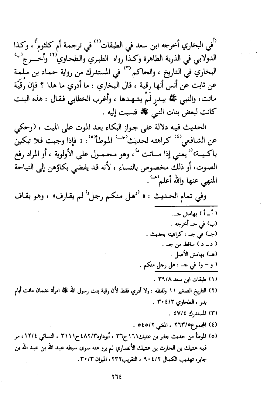 (¬2) التاريخ الصغير 11 ولفظه: ولا أدري فقط لأن رقية بنت رسول الله - صلى الله عليه وسلم - امرأة عثمان ماتت أيام بدر، الطحاوي 3/ 304.