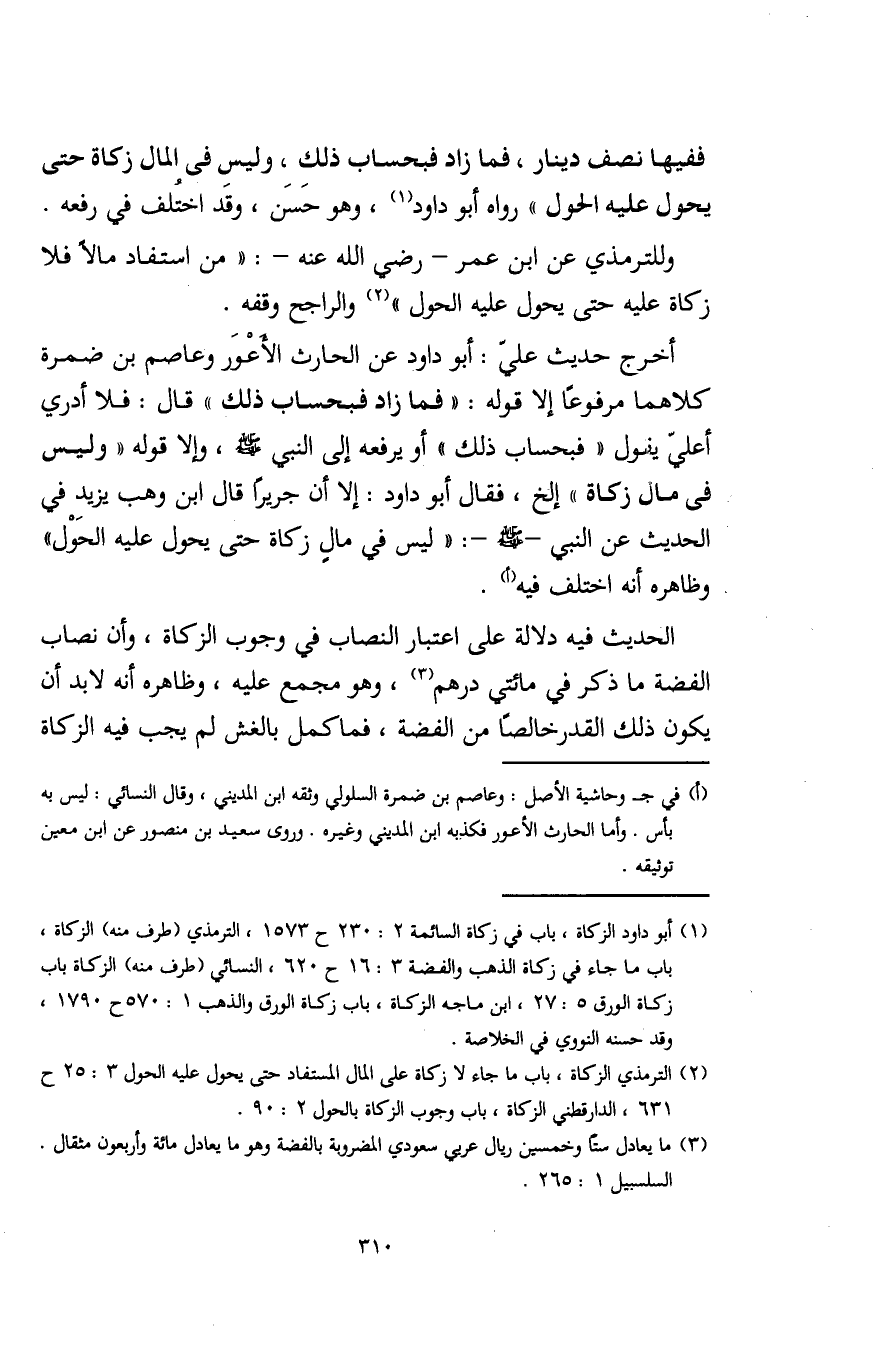 (¬1) أبو داود الزَّكاة، باب في زكاة السائمة 2: 230 ح 1573، التّرمذيّ (طرف منه) الزَّكاة، باب ما جاء في زكاة الذهب والفضة 3: 16 ح 620، النَّسائيُّ (طرف منه) الزَّكاة باب زكاة الورق 5: 27، ابن ماجة الزَّكاة، باب زكاة الورق والذهب 1: 570 ح 1790، وقد حسنه النووي في الخلاصة.