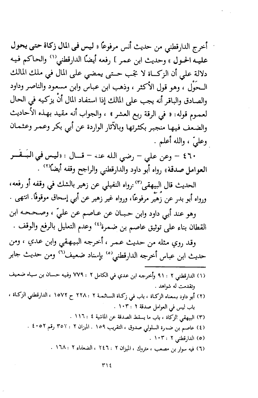 460 - وعن عليّ - رضي الله عنه - قال: "ليس في البَقَر العوامل صدقة" رواه أبو داود والدارقطني والراجح وقفه أيضًا (¬2).