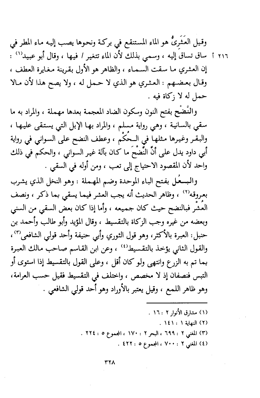 وقيل العَثَرِيُّ هو الماء المستنقع في بركة ونحوها يصب إليه ماء المطر في ساق تساق إليه، وسمى بذلك لأن الماء تتغير فيها، وقال أبو عبيد (¬1): إن العثري ما سقت السماء، والظاهر هو الأول بقرينة مغايرة العطف، وقال بعضهم: العشري هو الذي لا حمل له، ولا يصح هذا لأن ما لا حمل له لا زكاة فيه.