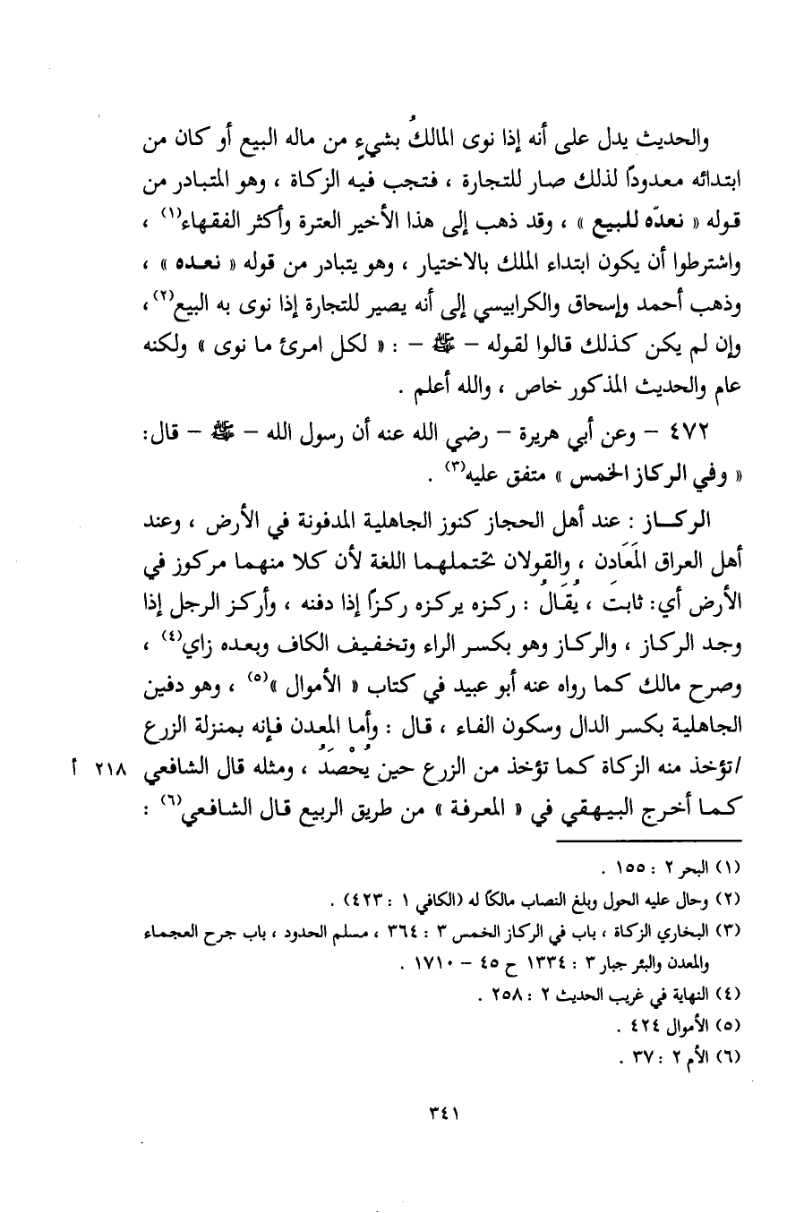 472 - وعن أبي هريرة - رضي الله عنه أن رسول الله - صلى الله عليه وسلم - قال: "وفي الركاز الخمس" متفق عليه (¬3).