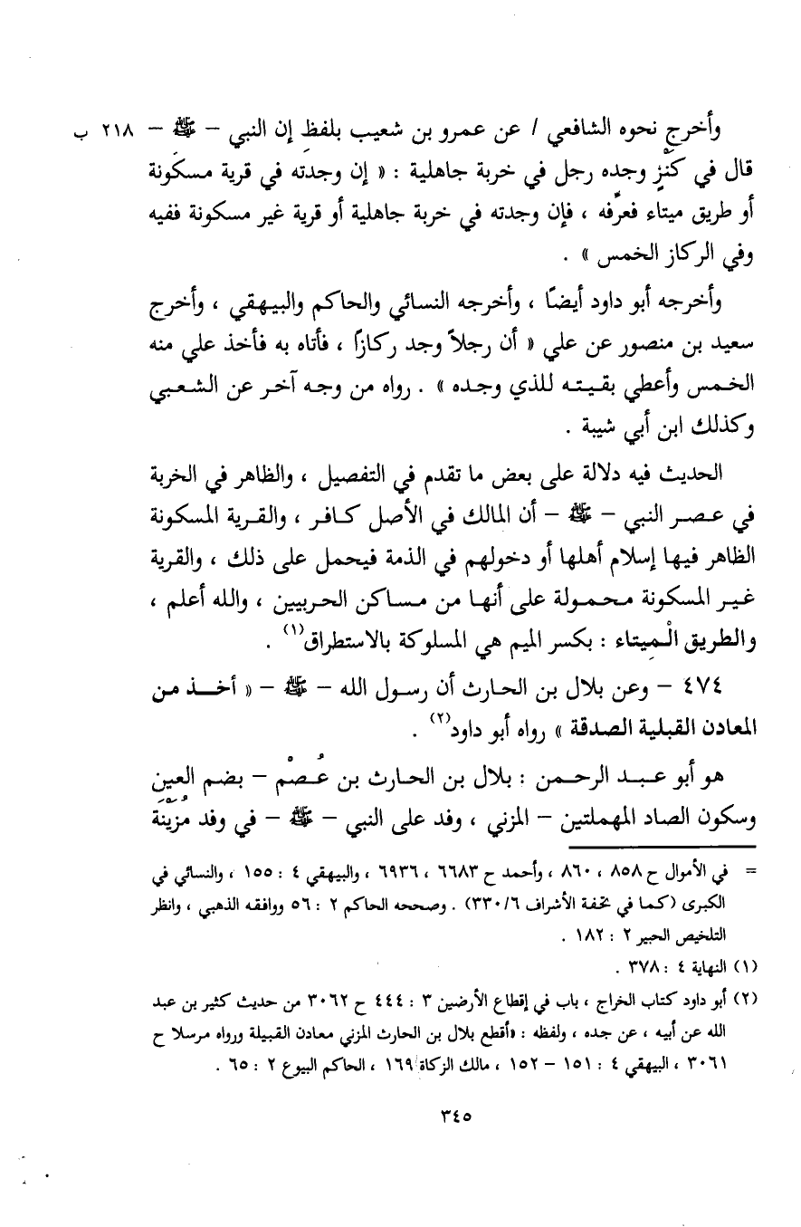 474 - وعن بلال بن الحارث أن رسول الله - صلى الله عليه وسلم - "أخذ من المعادن القبلية الصدقة" رواه أبو داود (¬2).