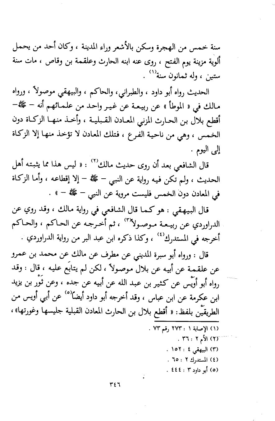 قال الشافعي بعد أن روى حديث مالك (¬2): "ليس هذا مما يثبته أهل الحديث، ولم تكن فيه رواية عن النبي - صلى الله عليه وسلم - إلا إقطاعه، وأما الزكاة في المعادن دون الخمس فليست مروية عن النبي - صلى الله عليه وسلم -".