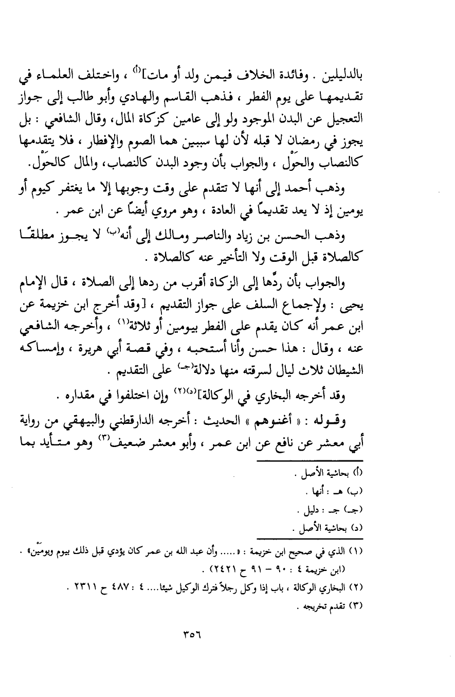 (¬1) الذي في صحيح ابن خزيمة: " ..... وأن عبد الله بن عمر كان يؤدي قبل ذلك بيوم ويومَيْن".