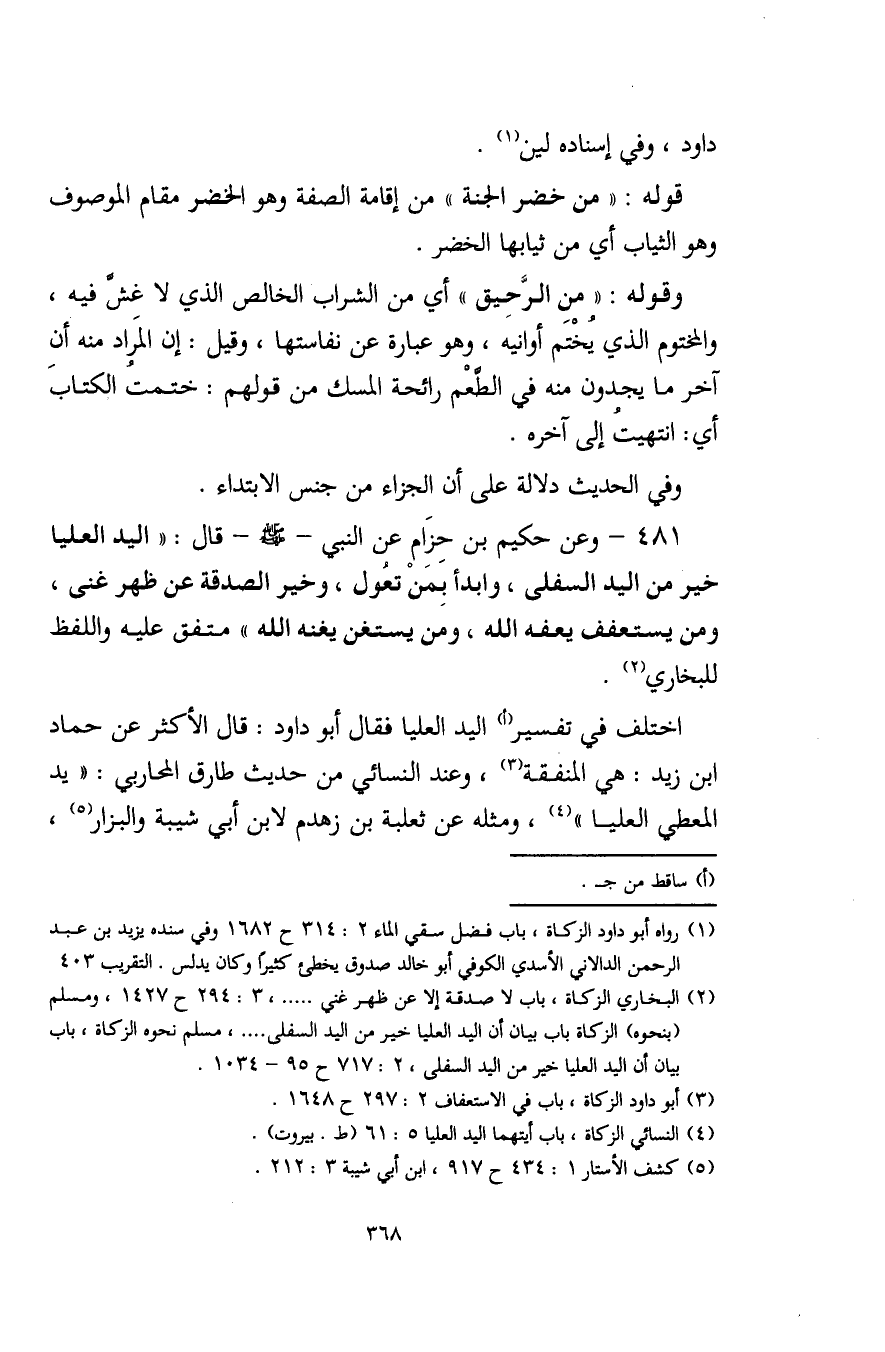 (¬2) البخاري الزكاة، باب لا صدقة إلا عن ظهر غنى ..... ، 3: 294 ح 1427، ومسلم (بنحوه) الزكاة باب بيان أن اليد العليا خير من اليد السفلى .... ، مسلم نحوه الزكاة، باب بيان أن اليد العليا خير من اليد السفلى، 2: 717 ح 95 - 1034.