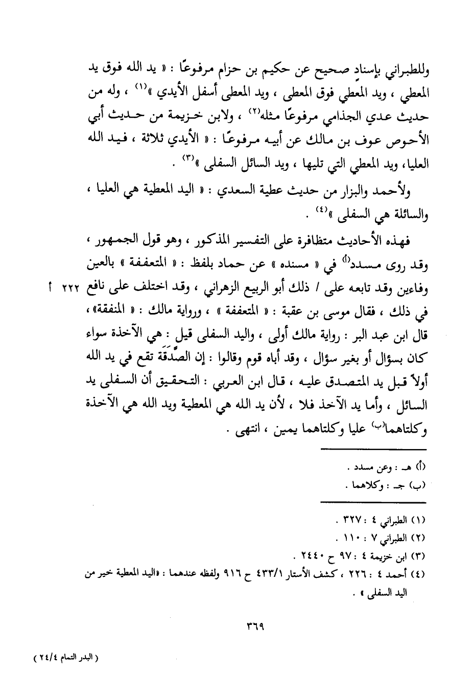 (¬4) أحمد 4: 226، كشف الأستار 1/ 433 ح 916 ولفظه عندهما: "اليد المعطية خير من اليد السفلى".