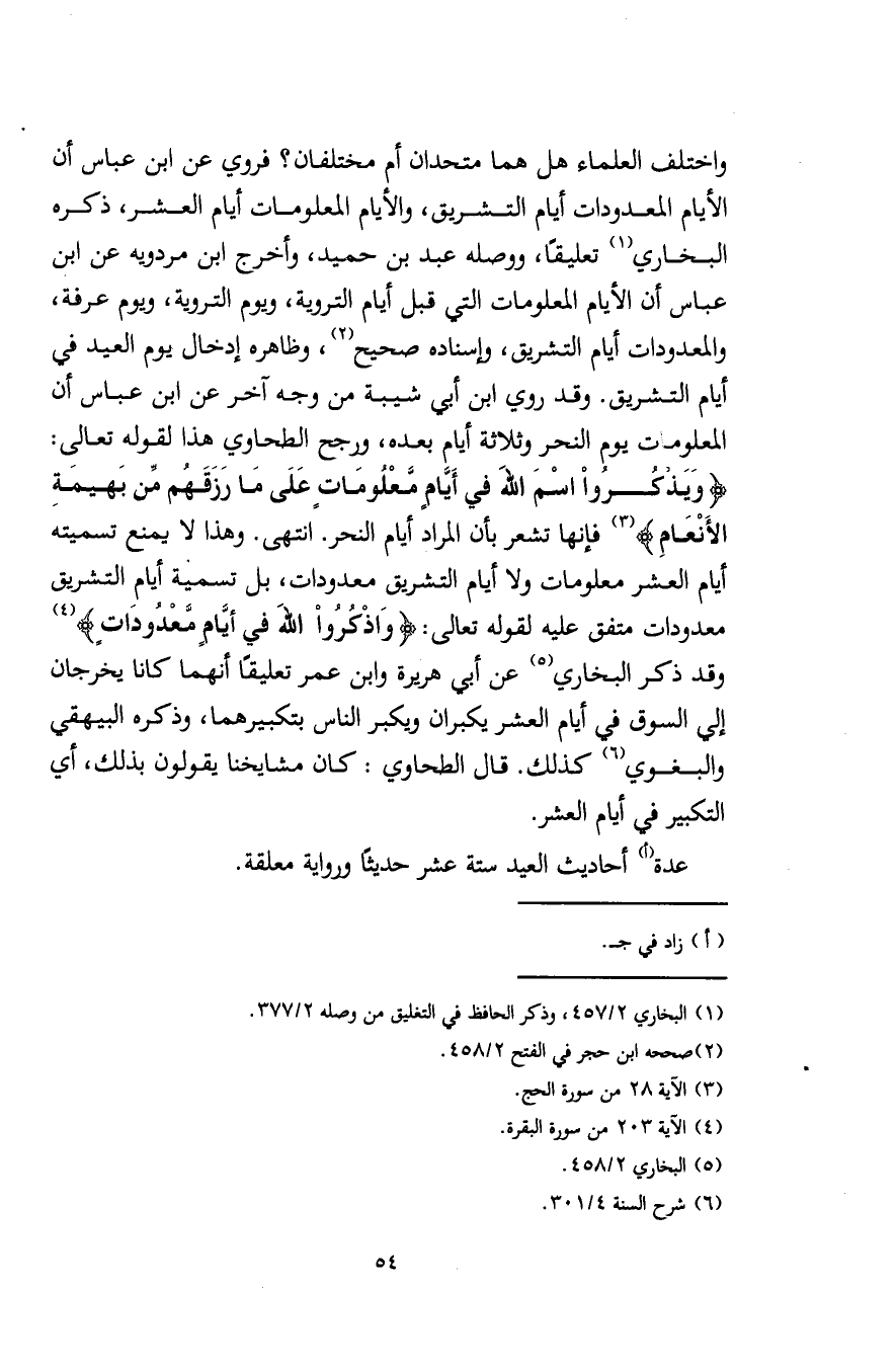 عدة (أ) أحاديث العيد ستة عشر حديثًا ورواية معلقة.