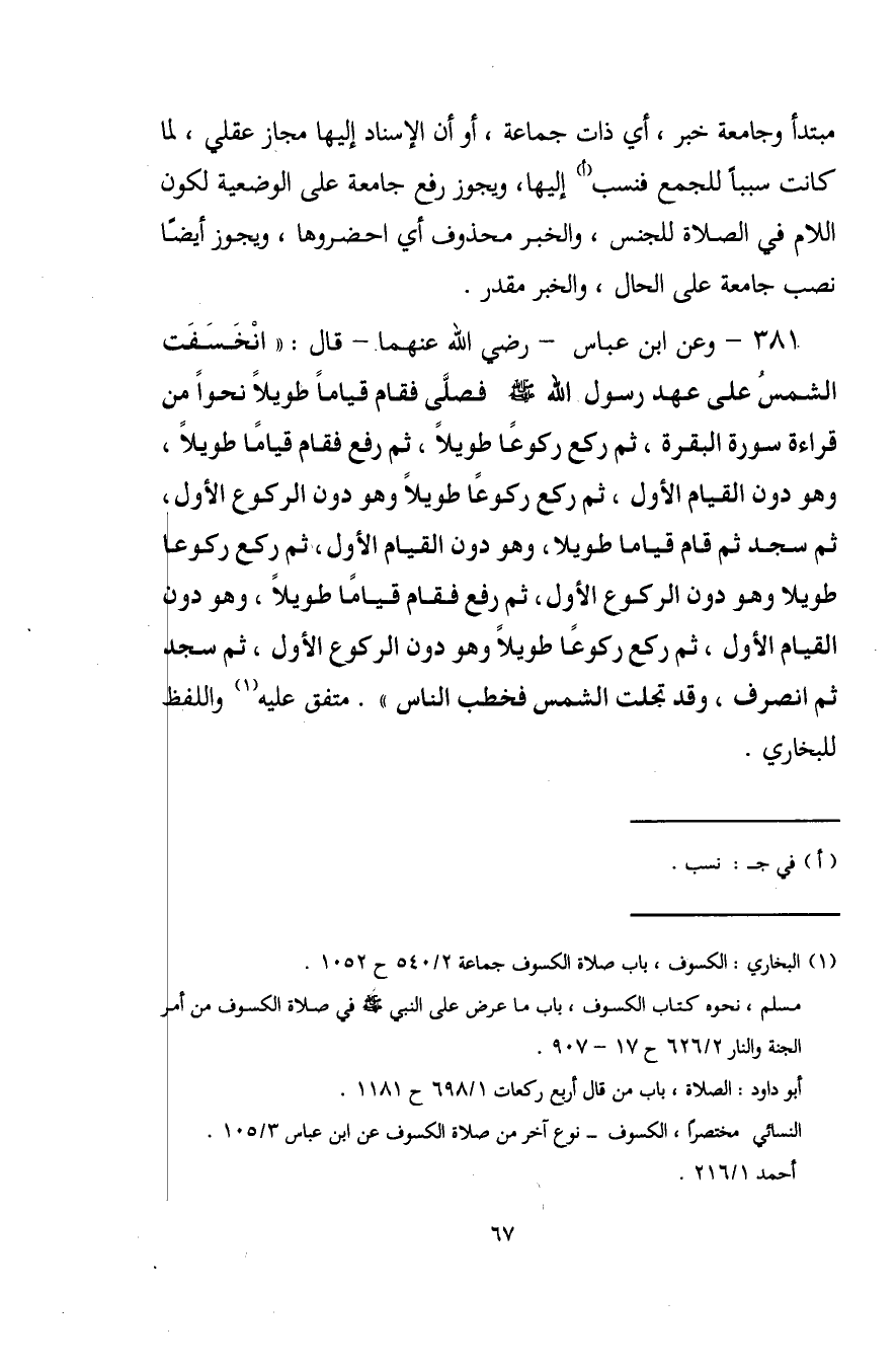 (¬1) البخاري: الكسوف، باب صلاة الكسوف جماعة 2/ 540 ح 1052.