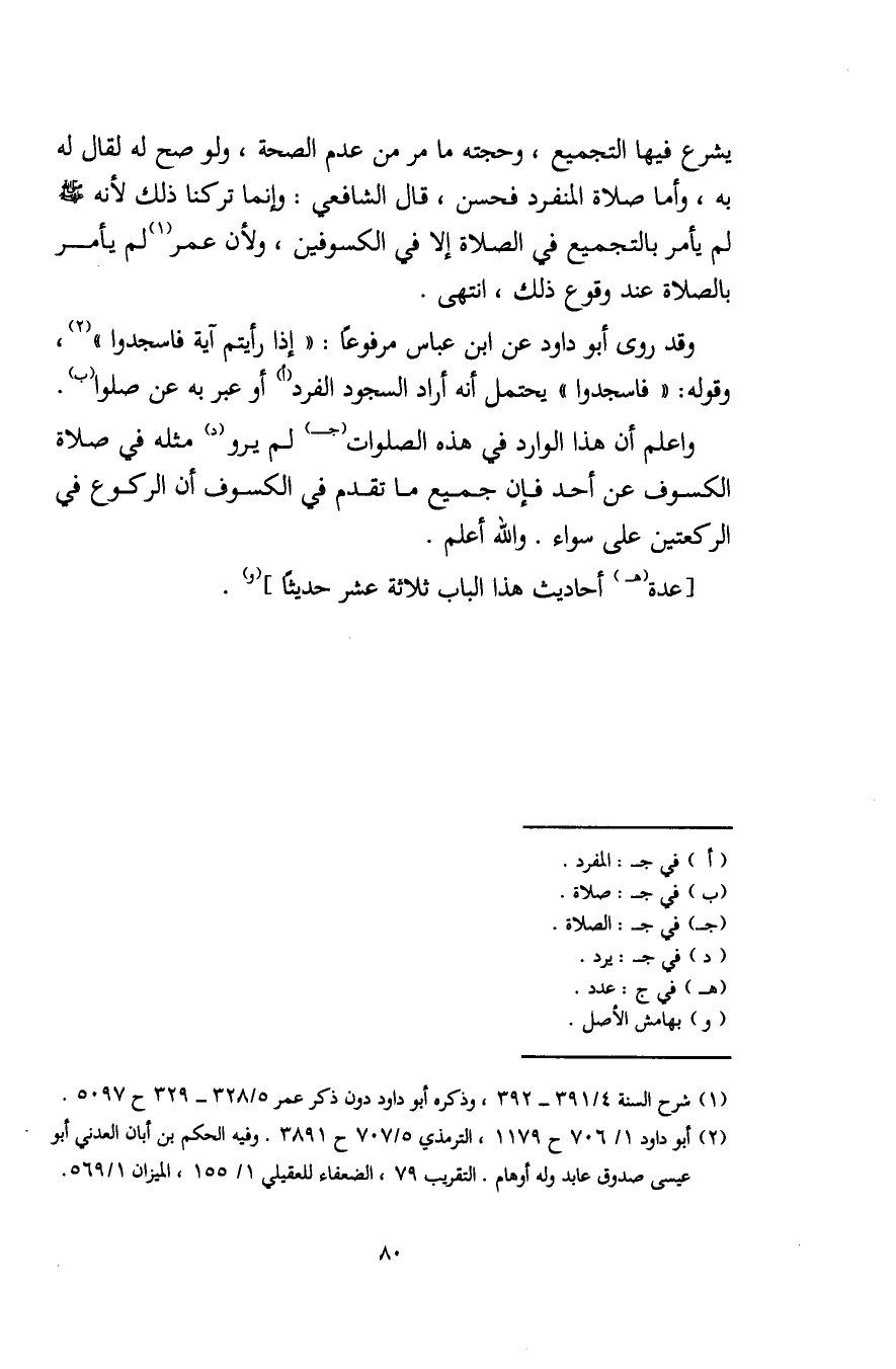 (¬2) أبو داود 1/ 706 ح 1179، الترمذي 5/ 707 ح 3891. وفيه الحكم بن أبان العدني أبو عيسى صدوق عابد وله أوهام. التقريب 79، الضعفاء للعقيلي 1/ 155، الميزان 1/ 569.