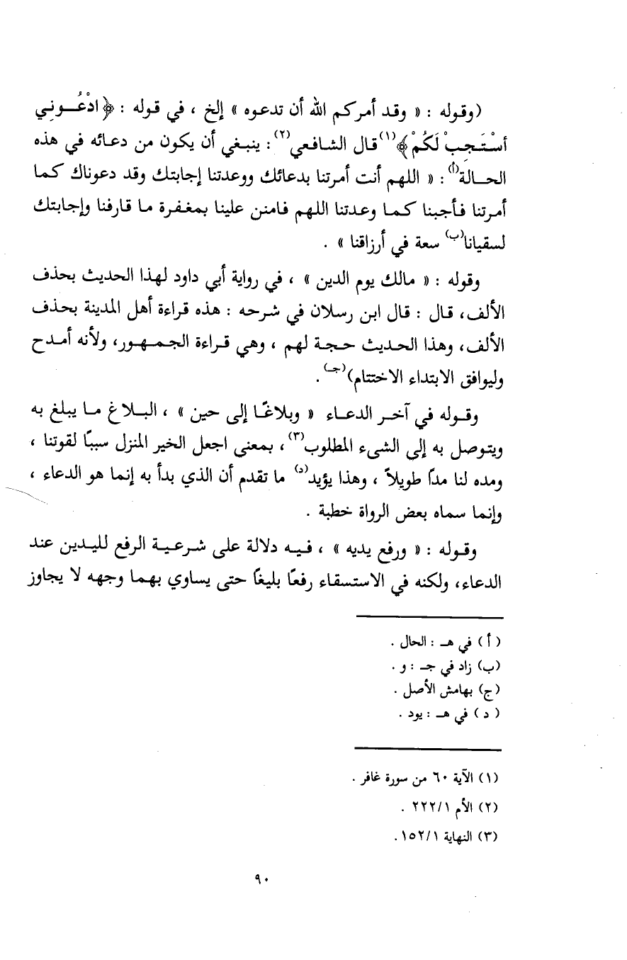 (وقوله: "وقد أمركم الله أن تدعوه" إلخ، في قوله: {ادْعُونِي أَسْتَجِبْ لَكُمْ} (¬1) قال الشافعي (¬2): ينبغي أن يكون من دعائه في هذه الحالة (أ): "اللهم أنت أمرتنا بدعائك ووعدتنا إجابتك وقد دعوناك كما أمرتنا فأجبنا كما وعدتنا اللهم فامنن علينا بمغفرة ما قارفنا وإجابتك لسقيانا (ب) سعة في أرزاقنا".