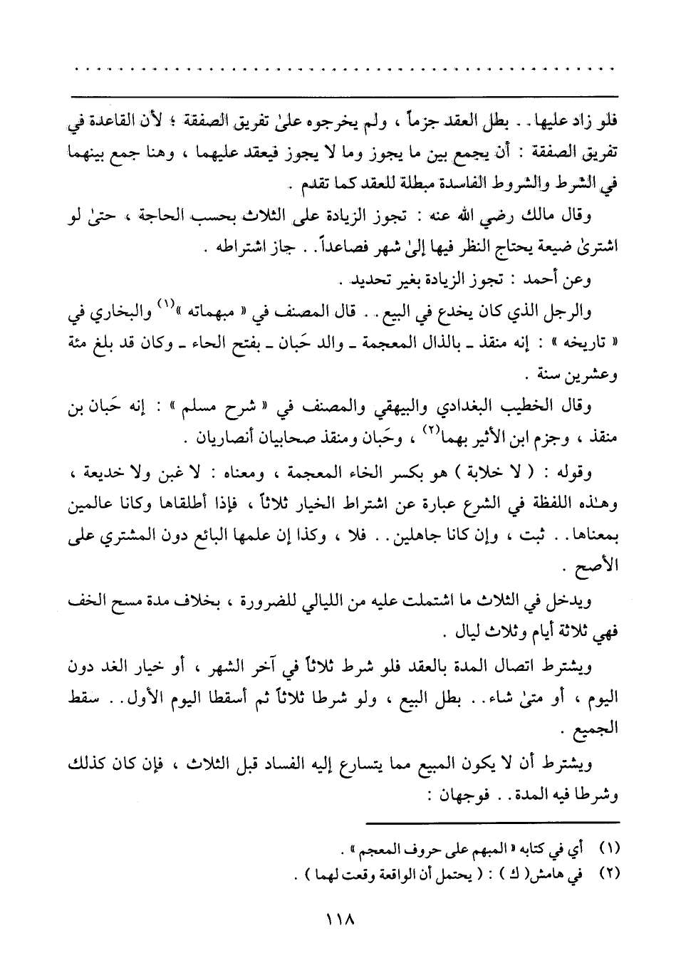 وقوله: (لا خلابة) هو بكسر الخاء المعجمة، ومعناه: لا غبن ولا خديعة، وهذه اللفظة في الشرع عبارة عن اشتراط الخيار ثلاثًا، فإذا أطلقاها وكانا عالمين بمعناها .. ثبت، وإن كان جاهلين .. فلا، وكذا إن علمها البائع دون المشتري على الأصح.