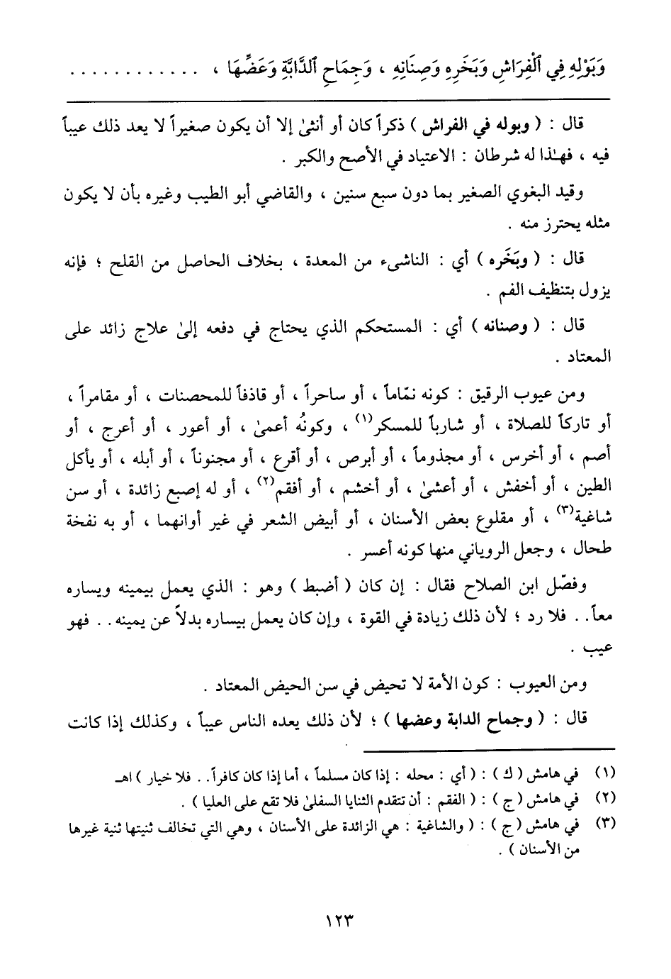 وَبَوْلِهِ فِي الْفِرَاشِ وَبَخَرِهِ وَصِنَانِهِ، وَجِمَاحِ الدَّابَّةِ وَعَضِّهَا،