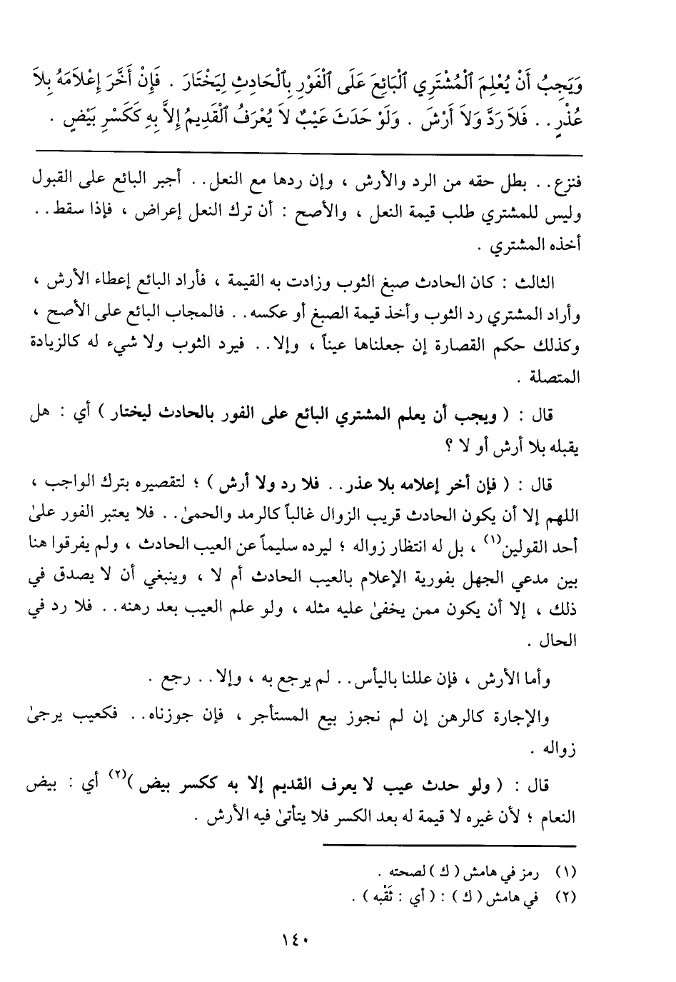 قال: (ويجب أن يعلم المشتري البائع على الفور بالحادث ليختار) أي: هل يقبله بلا أرش أو لا؟