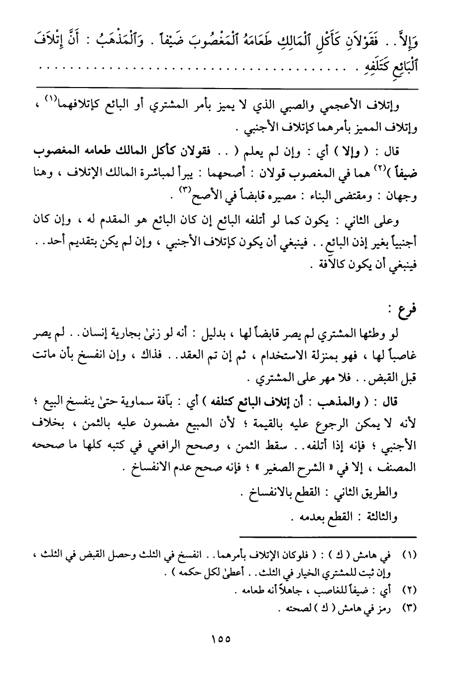 وإتلاف الأعجمي والصبي الذي لا يميز بأمر المشتري أو البائع كإتلافهما، وإتلاف المميز بأمرهما كإتلاف الأجنبي.