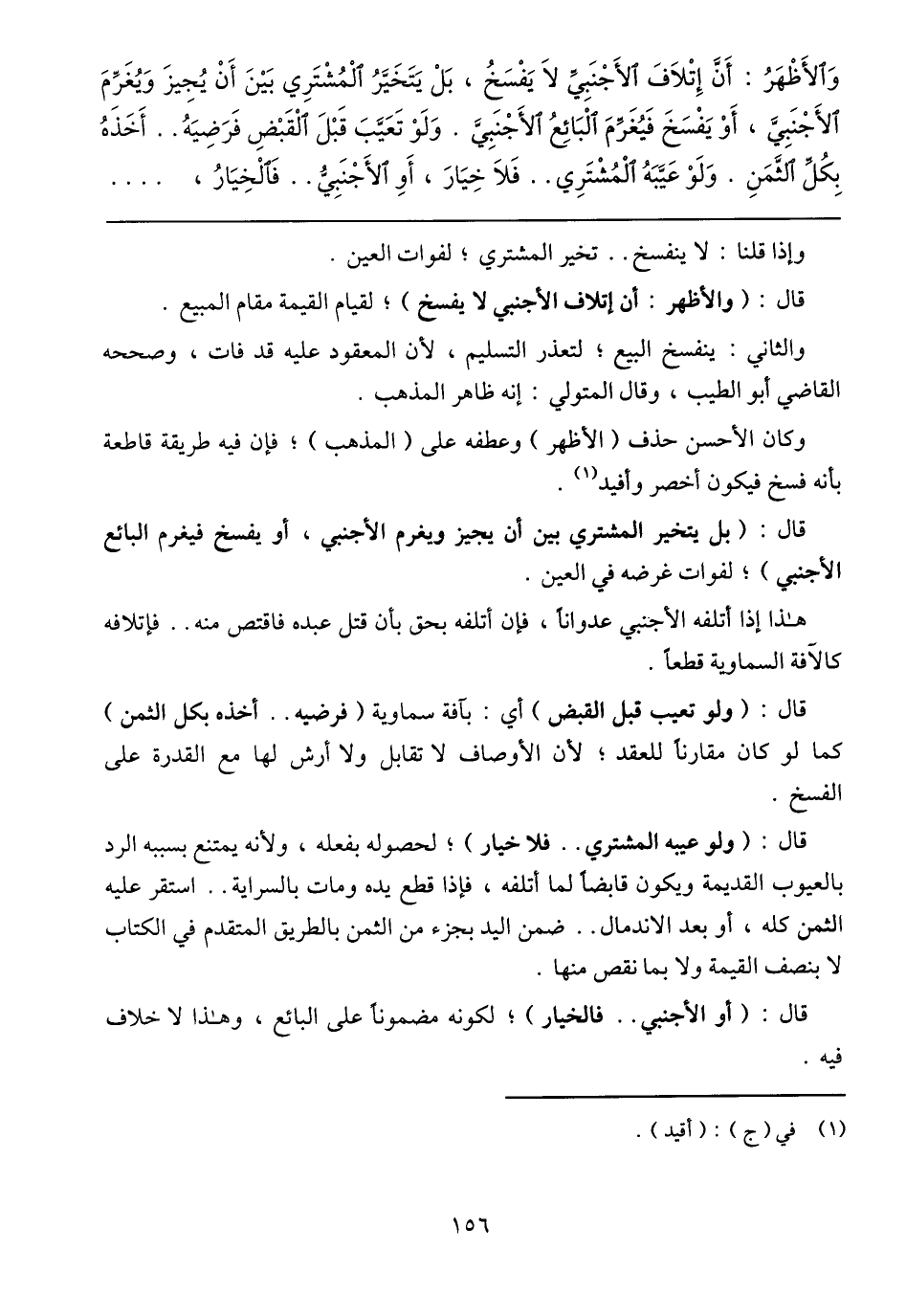 وَالأَظْهَرُ: أَنَّ إِتْلَافَ الأَجْنَبِيِّ لَا يَفْسَخُ، بَلْ يَتَخَيَّرُ الْمُشْتَرِي بَيْنَ أَنْ يُجِيزَ وَيُغَرِّمَ الأَجْنَبِيَّ، أَوْ يَفْسَخَ فَيُغَرِّمَ الْبَائِعُ الأَجْنَبِيَّ. وَلَوْ تَعَيَّبَ قَبْلَ الْقَبْضِ فَرَضِيَهُ .. أَخَذَهُ بِكُلِّ الثَّمَنِ. وَلَوْ عَيَّبَهُ الْمُشْتَرِي .. فَلَا خِيَارَ، أَوِ الأَجْنَبِيُّ .. فَالْخِيَارُ،