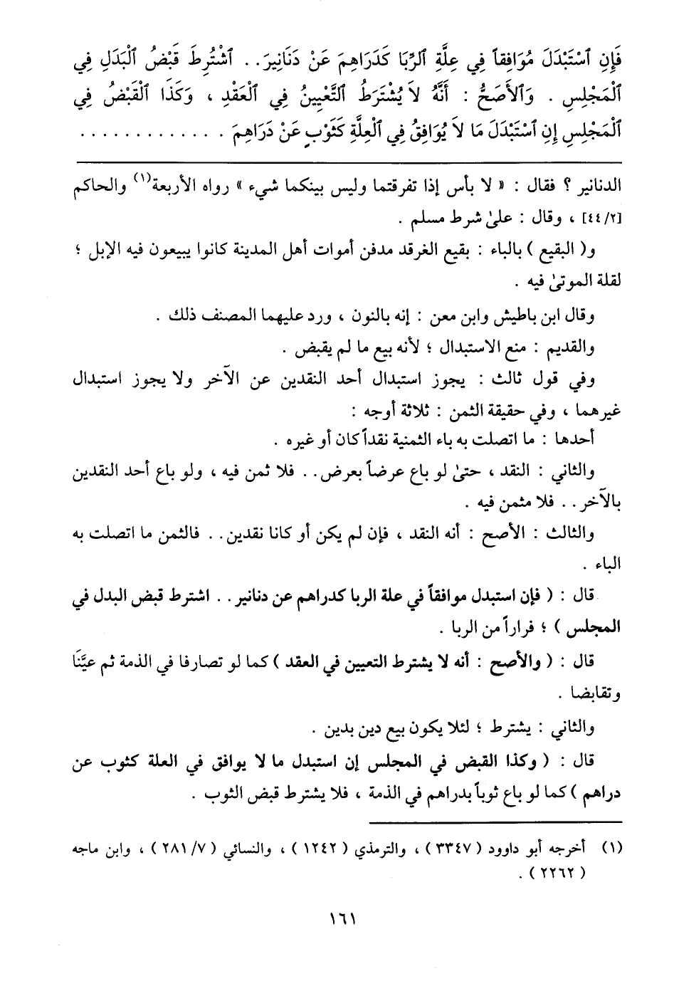 الدنانير؟ فقال: (لا بأس إذا تفرقتما وليس بينكما شيء) رواه الأربعة والحاكم [2/ 44]، وقال: على شرط مسلم.