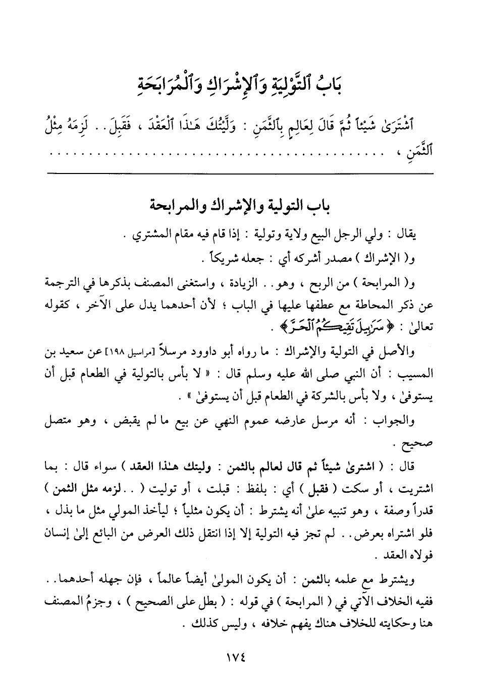 بَابُ التَّوْلِيَةِ وَالإِشْرَاكِ وَالْمُرَابَحَةِ