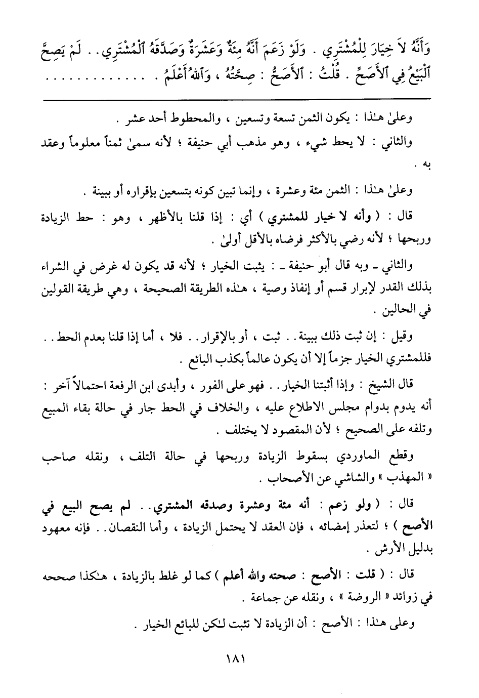 وَأَنَّهُ لَا خِيَارَ لِلْمُشْتَرِي. وَلَوْ زَعَمَ أَنَّهُ مِئَةٌ وَعَشَرَةٌ وَصَدَّقَهُ الْمُشْتَرِي .. لَمْ يَصِحَّ الْبَيْعُ فِي الأَصَحِّ. قُلْتُ: الأَصَحُّ: صِحَّتُهُ، وَاللهُ أَعْلَمُ