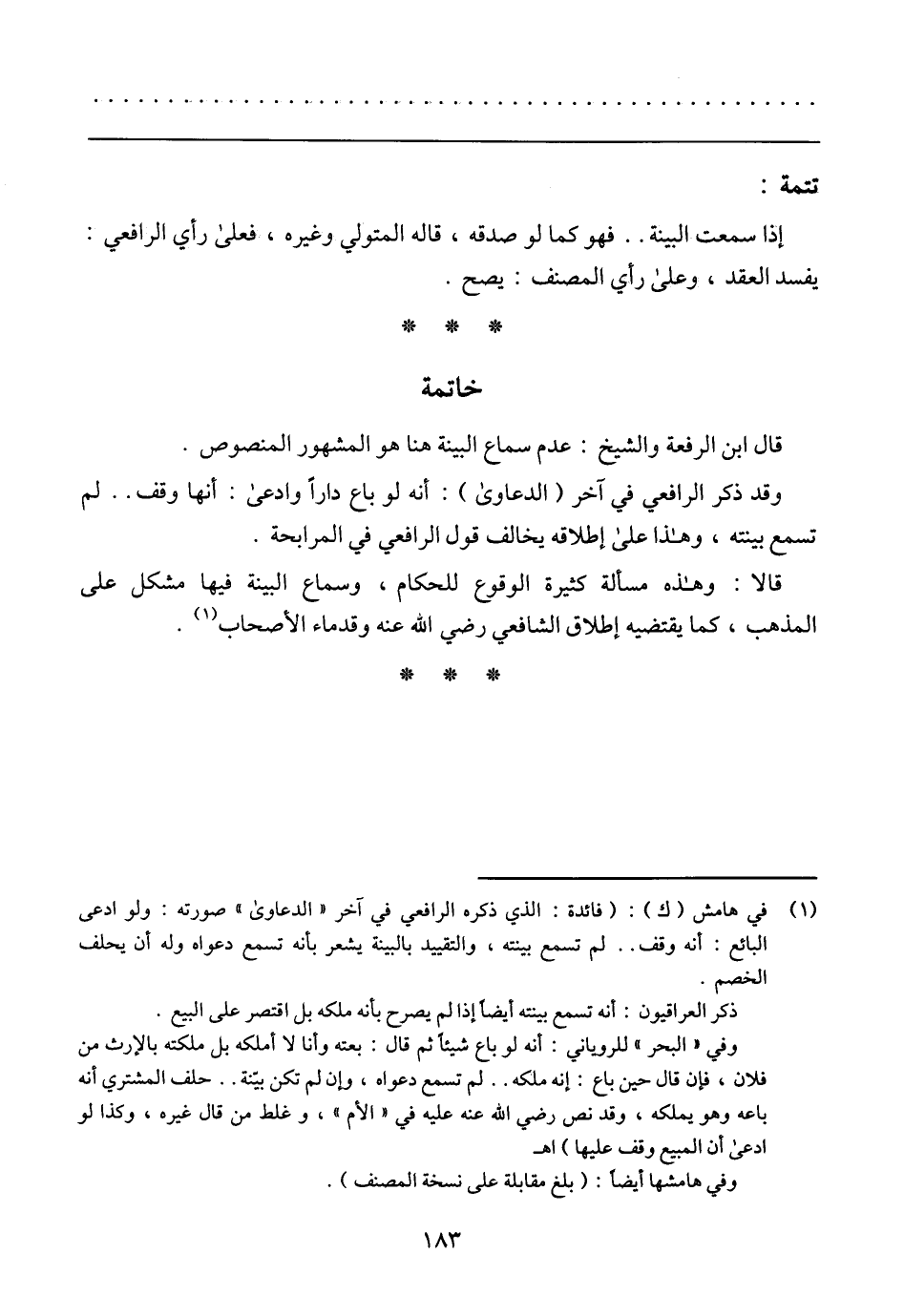 قالا: وهذه مسألة كثيرة الوقوع للحكام، وسماع البينة فيها مشكل على المذهب، كما يقتضيه إطلاق الشافعي رضي الله عنه وقدماء الأصحاب.