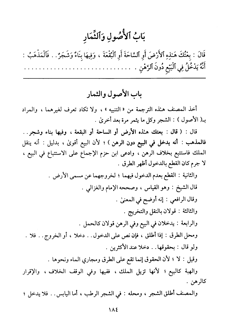 باب الأصول والثمار