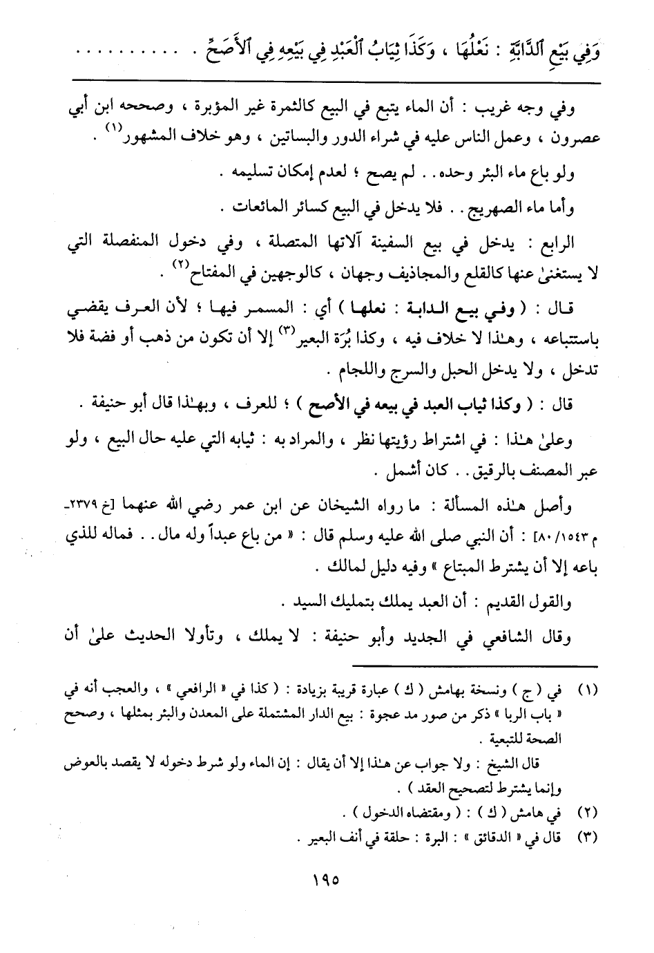 وفي وجه غريب: أن الماء يتبع في البيع كالثمرة غير المؤبرة، وصححه ابن أبي عصرون، وعمل الناس عليه في شراء الدور والبساتين، وهو خلاف المشهور.