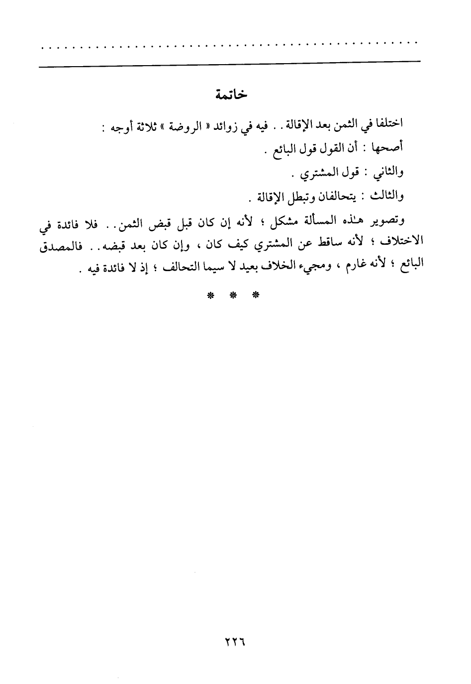 اختلفا في الثمن بعد الإقالة .. فيه في زوائد (الروضة) ثلاثة أوجه: