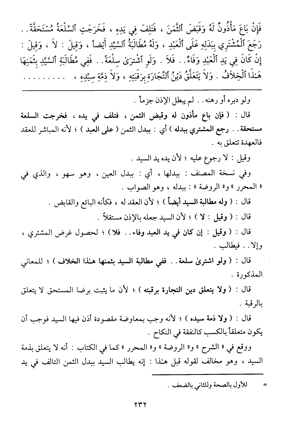 فَإِنْ بَاعَ مَاذُونٌ لَهُ وَقَبَضَ الثَّمَنَ، فَتَلِفَ فِي يَدِهِ، فَخَرَجَتِ السِّلْعَةُ مُسْتَحَقَّةً .. رَجَعَ الْمُشْتَرِي بِبَدَلِهِ عَلَى الْعَبْدِ، وَلَهُ مُطَالَبَةُ السَّيِّدِ أَيْضًا، وَقِيلَ: لَا، وَقِيلَ: إِنْ كَانَ فِي يَدِ الْعَبْدِ وَفَاءٌ .. فَلَا. وَلَوِ اشْتَرى سِلْعَةً .. فَفِي مُطَالَبَةِ السَّيِّدِ بِثَمَنِهَا هَذَا الْخِلَافُ. وَلَا يَتَعَلَّقُ دَيْنُ التِّجَارَةِ بِرَقَبَتِهِ، وَلَا ذِمَّةِ سِيِّدِهِ،