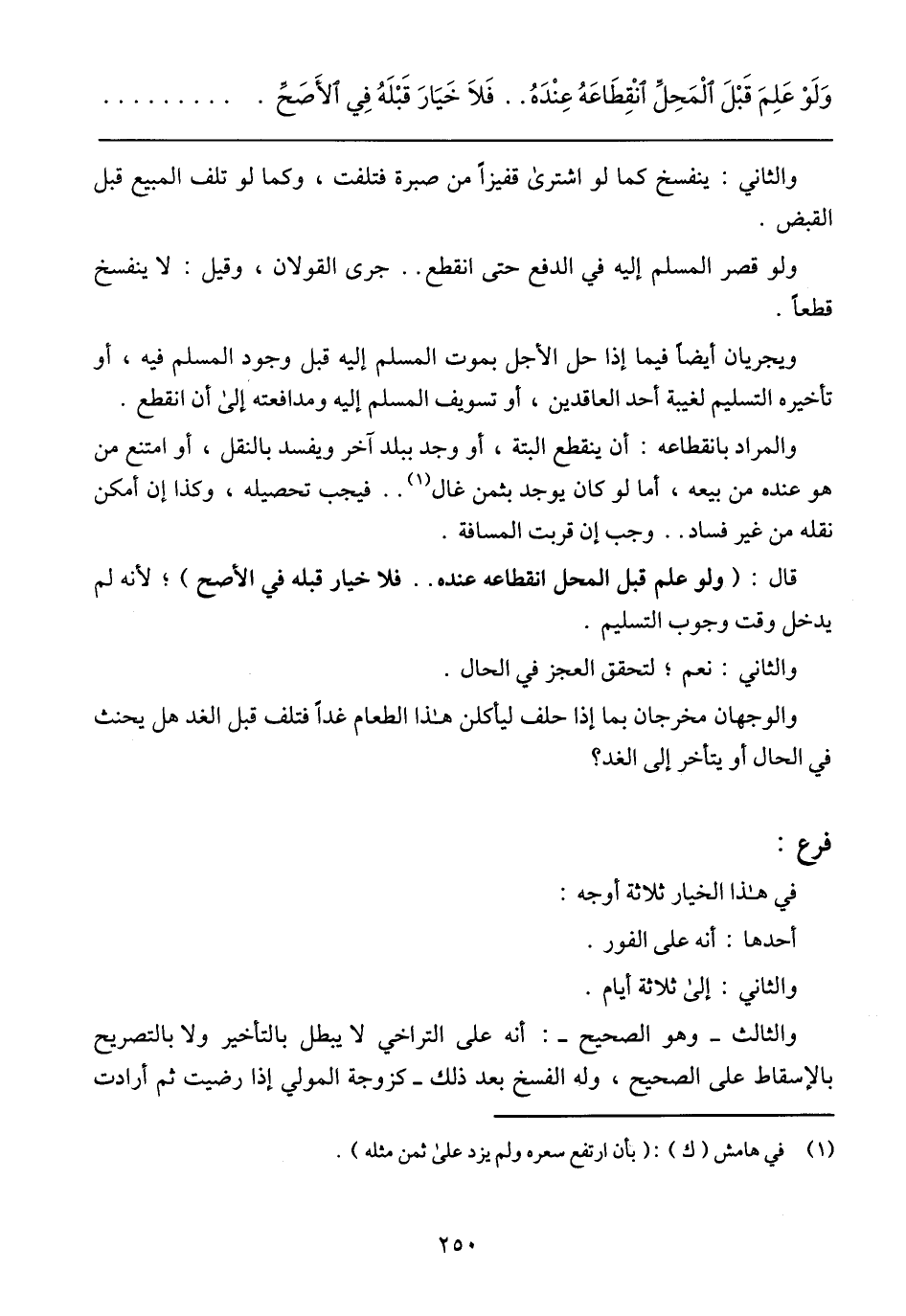 قال: (ولو علم قبل المحل انقطاعه عنده .. فلا خيار قبله في الأصح)؛ لأنه لم يدخل وقت وجوب التسليم.