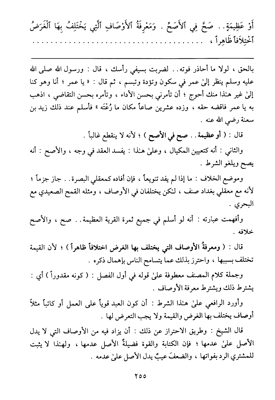 أَوْ عَظِيمَةٍ .. صَحَّ فِي الأَصَحِّ. وَمَعْرِفَةُ الأَوْصَافِ الَّتِي يَخْتَلِفُ بِهَا الْغَرَضُ اخْتِلَافًا ظَاهِرًا