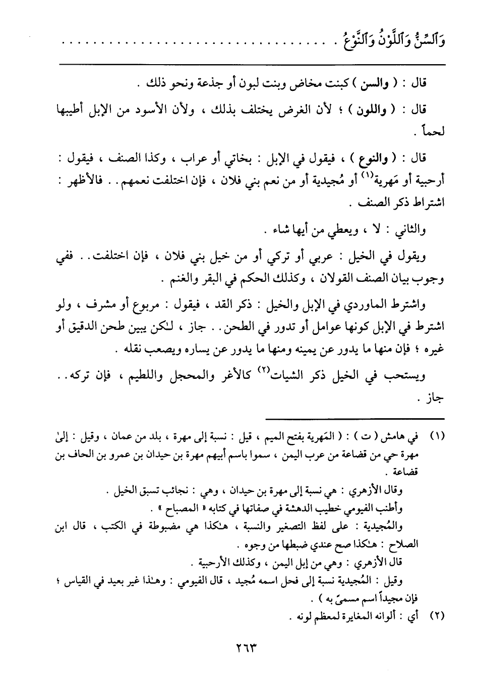 وَالسِّنُّ وَاللَّوْنُ وَالنَّوْعُ