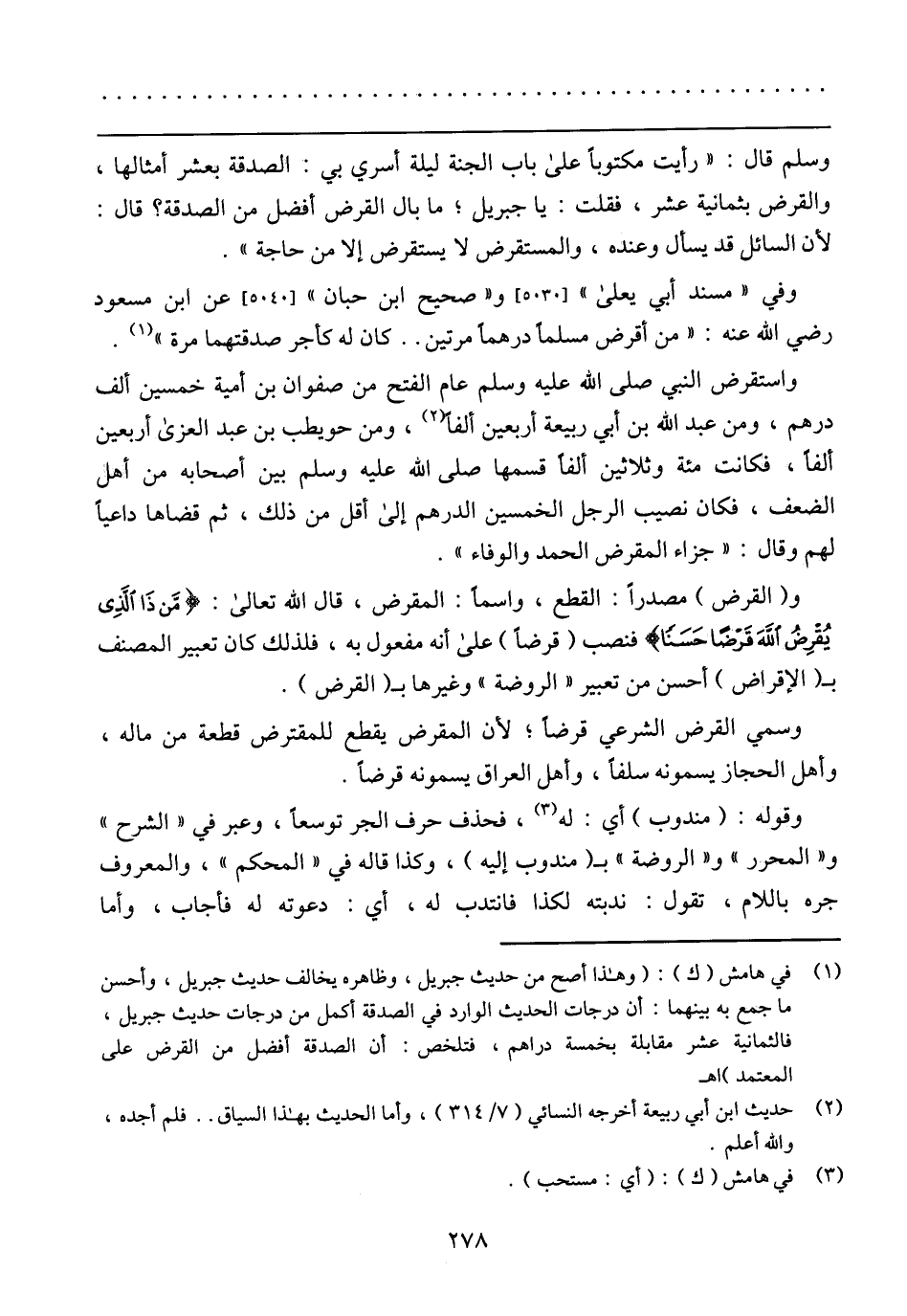 وسلم قال: (رأيت مكتوبًا على باب الجنة ليلة أسري به: الصدقة بعشر أمثالها، والقرض بثمانية عشر، فقلت: يا جبريل؛ ما بال القرض أفضل من الصدقة؟ قال: لأن السائل قد يسأل وعنده، والمستقرض لا يستقرض إلا من حاجة).