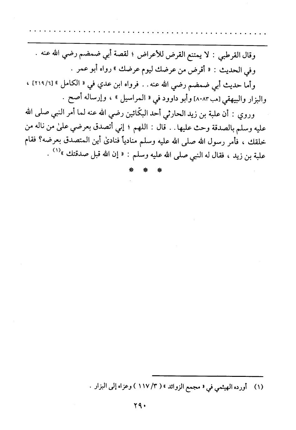 وقال القرطبي: لا يمتنع القرض للأعراض؛ لقصة أبي ضمضم رضي الله عنه.