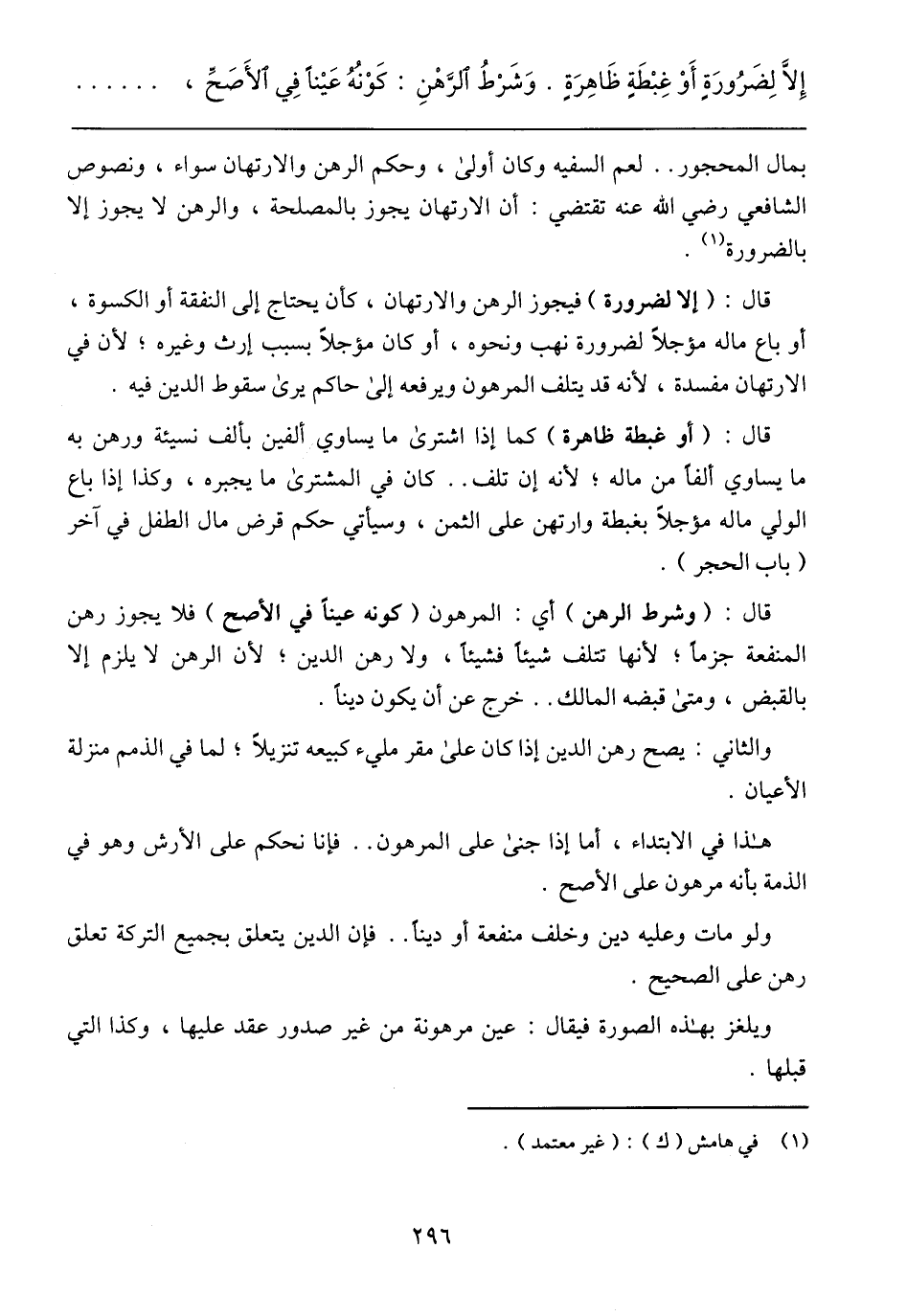 إِلَّا لِضَرُورَةٍ أَوْ غِبْطَةٍ ظَاهِرَةٍ. وَشَرْطُ الرَّهْنِ: كَوْنُهُ عَيْنًا فِي الأَصَحِّ،