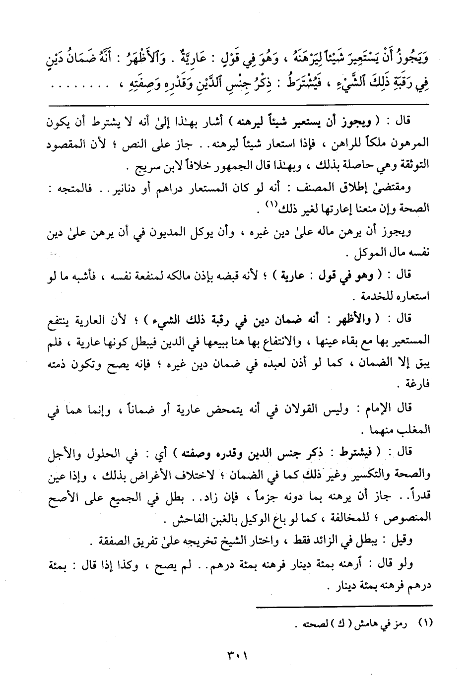 وَيَجُوزُ أَنْ يَسْتَعِيرَ شَيْئًا لِبَرْهَنَهُ، وَهُوَ فِي قَوْلٍ: عَارِيَّةٌ. وَالأَظْهَرُ: أَنَّهُ ضَمَانُ دَيْنٍ فِي رَقَبَةِ ذَلِكَ الشَّيْءِ، فَيُشْتَرَطُ: ذِكْرُ جِنْسِ الدَّيْنِ وَقَدْرِهِ وَصِفَتِهِ،