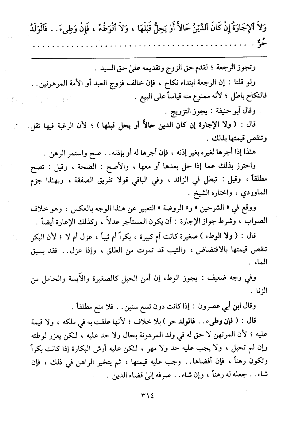 قال: (ولا الوطء) صغيرة كانت أم كبيرة، بكرًا أم ثيبًا، عزل أم لا، لأن البكر تنقص قيمتها بالافتضاض، والثيب قد تموت من الطلق، وإذا عزل .. فقد يسبق الماء.