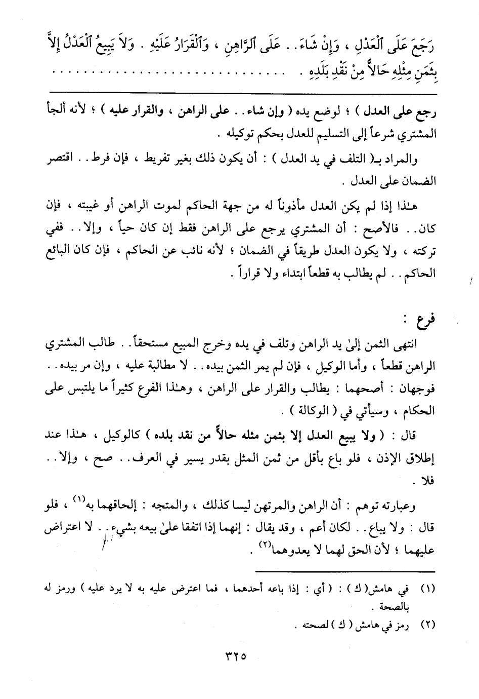 هذا إذا لم يكن العدل مأذونًا له من جهة الحاكم لموت الراهن أو غيبته، فإن كان .. فالأصح: أن المشتري يرجع على الراهن فقط إن كان حيًا، وإلا .. ففي تركته، ولا يكون العدل طريقًا في الضمان؛ لأنه نائب عن الحاكم، فإن كان البائع الحاكم .. لم يطالب به قطعًا ابتداء ولا قرارًا.