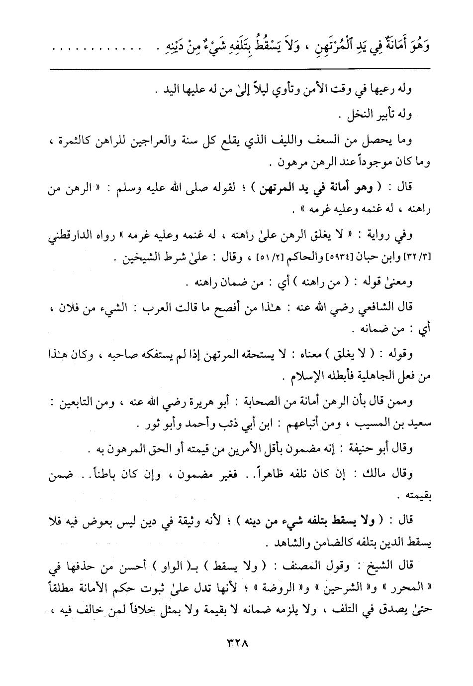 قال الشيخ: وقول المصنف: (ولا يسقط) بـ (الواو) أحسن من حذفها في (المحرر) و (الشرحين) و (الروضة)؛ لأنها تدل على ثبوت حكم الأمانة مطلقًا حتى يصدق في التلف، ولا يلزمه ضمانه لا بقيمة ولا بمثل خلافًا لمن خالف فيه،