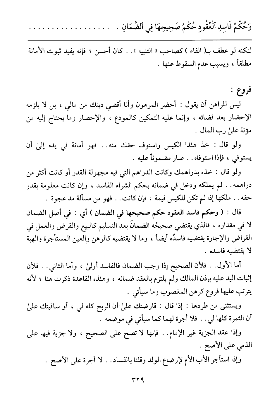 قال: (وحكم فاسد العقود حكم صحيحها في الضمان) أي: في أصل الضمان لا في مقداره، فالذي يقتضي صحيحُه الضمان بعد التسليم كالبيع والقرض والعمل في القراض والإجارة يقتضيه فاسده أيضًا، وما لا يقتضيه كالرهن والعين المستأجرة والهبة لا يقتضيه فاسده.