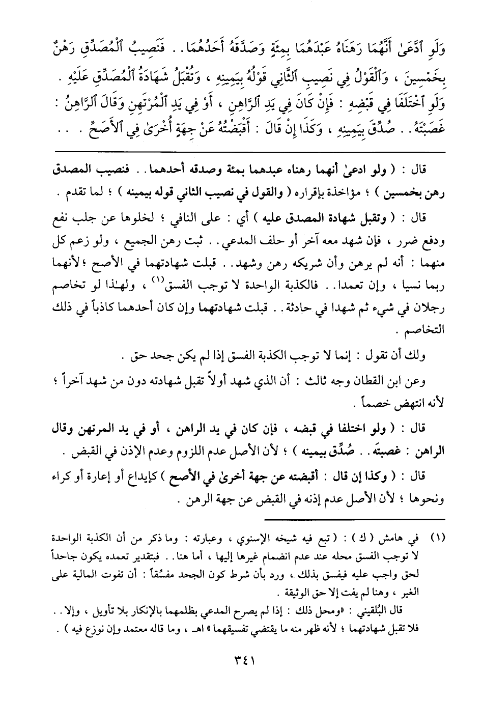 قال: (وتقبل شهادة المصدق عليه) أي: على النافي؛ لخلوها عن جلب نفع ودفع ضرر، فإن شهد معه آخر أو حلف المدعي .. ثبت رهن الجميع، ولو زعم كل منهما: أنه لم يرهن وأن شريكه رهن وشهد .. قبلت شهادتهما في الأصح؛ لأنهما ربما نسيا، وإن تعمدا .. فالكذبة الواحدة لا توجب الفسق، ولهذا لو تخاصم رجلان في شيء ثم شهدا في حادثة .. قبلت شهادتهما وإن كان أحدهما كاذبًا في ذلك التخاصم.