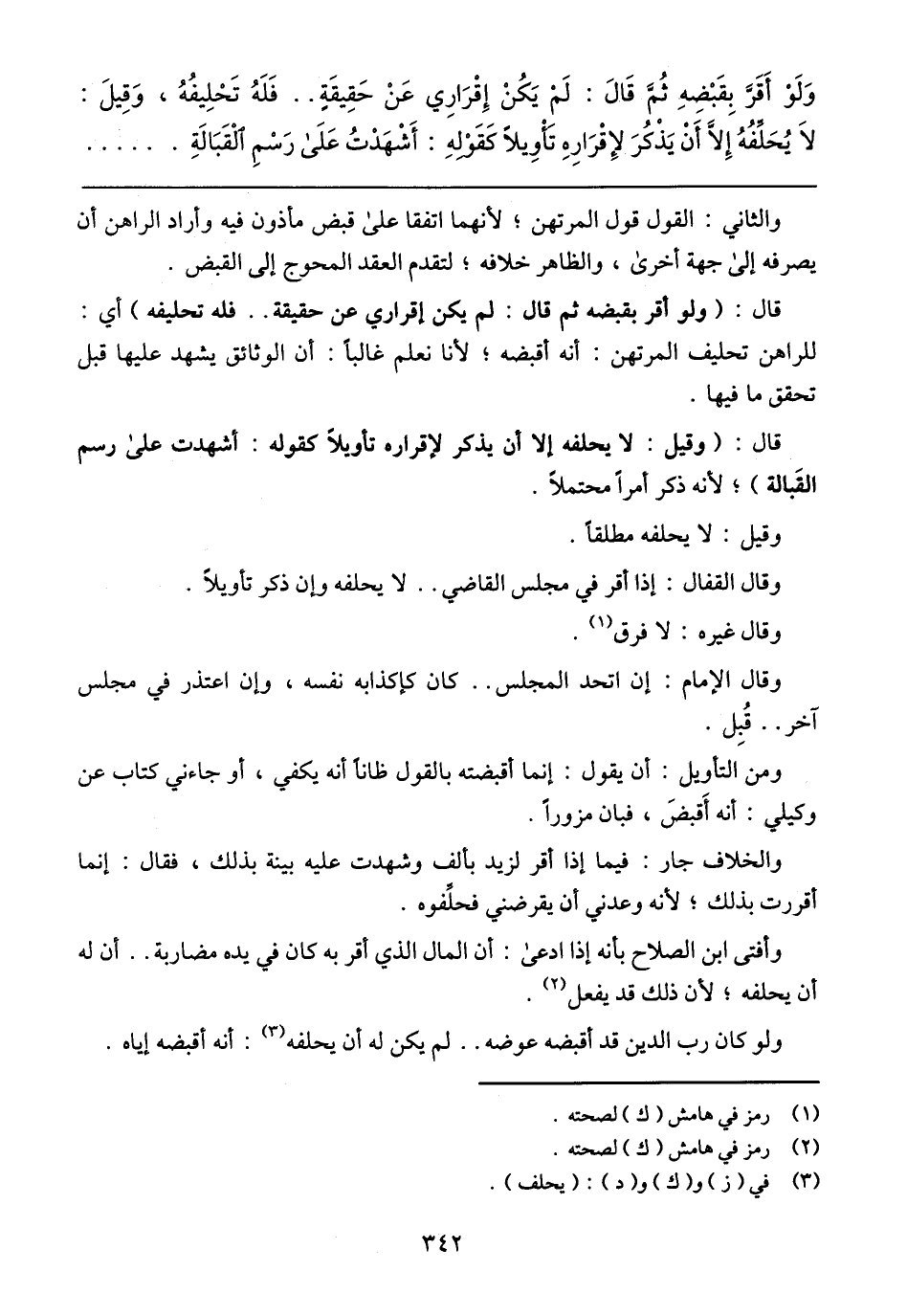 ومن التأويل: أن يقول: إنما أقبضته بالقول ظانًا أنه يكفي، أو جاءني كتاب عن وكيلي: أنه أقبض، فبان مزورًا.