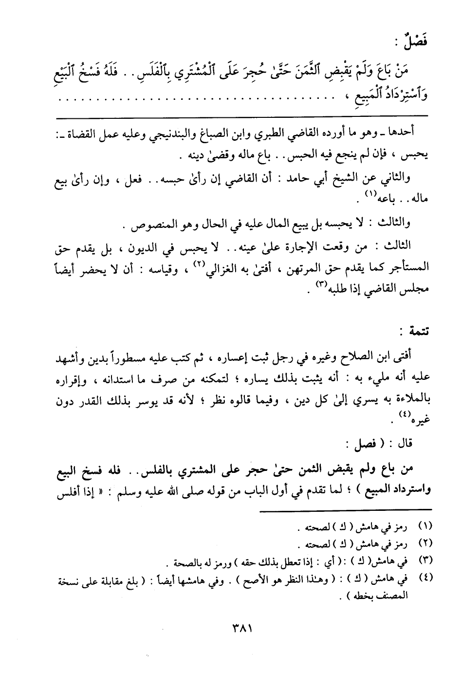 من باع ولم يقبض الثمن حتى حجر على المشتري بالفلس .. فله فسخ البيع واسترداد المبيع)؛ لما تقدم في أول الباب من قوله صلى الله عليه وسلم: (إذا أفلس
