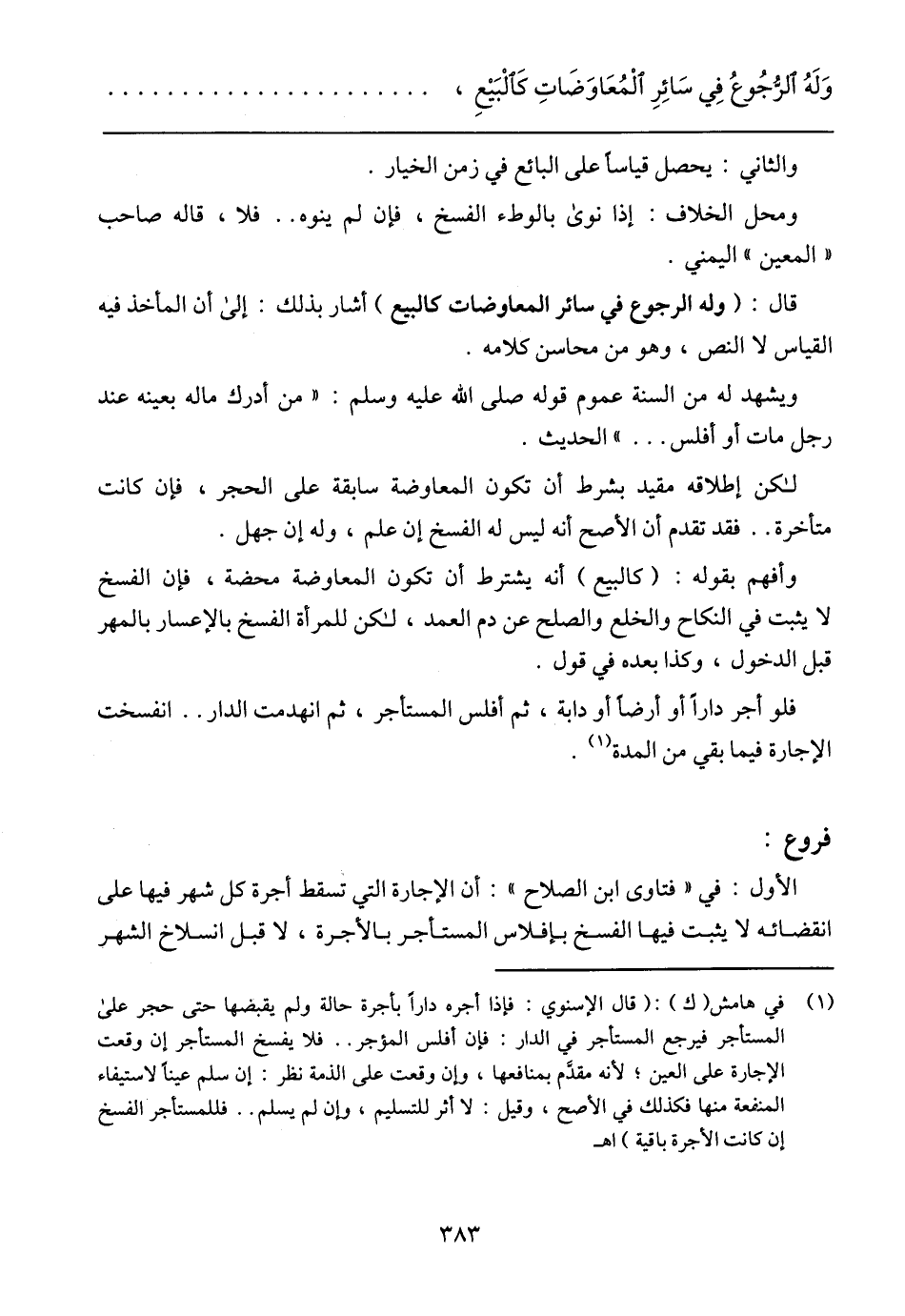 قال: (وله الرجوع في سائر المعاوضات كالبيع) أشار بذلك: إلى أن المأخذ فيه القياس لا النص، وهو من محاسن كلامه.
