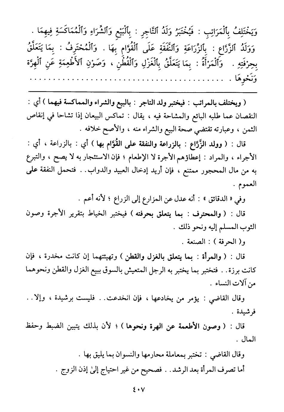 (ويختلف بالمراتب: فيختبر ولد التاجر: بالبيع والشراء والمماكسة فيهما) أي: النقصان عما طلبه البائع والمشاحة فيه، يقال: تماكس البيعان إذا تشاحا في إنقاص الثمن، وعبارته تقتضي صحة البيع والشراء منه، والأصح خلافه.