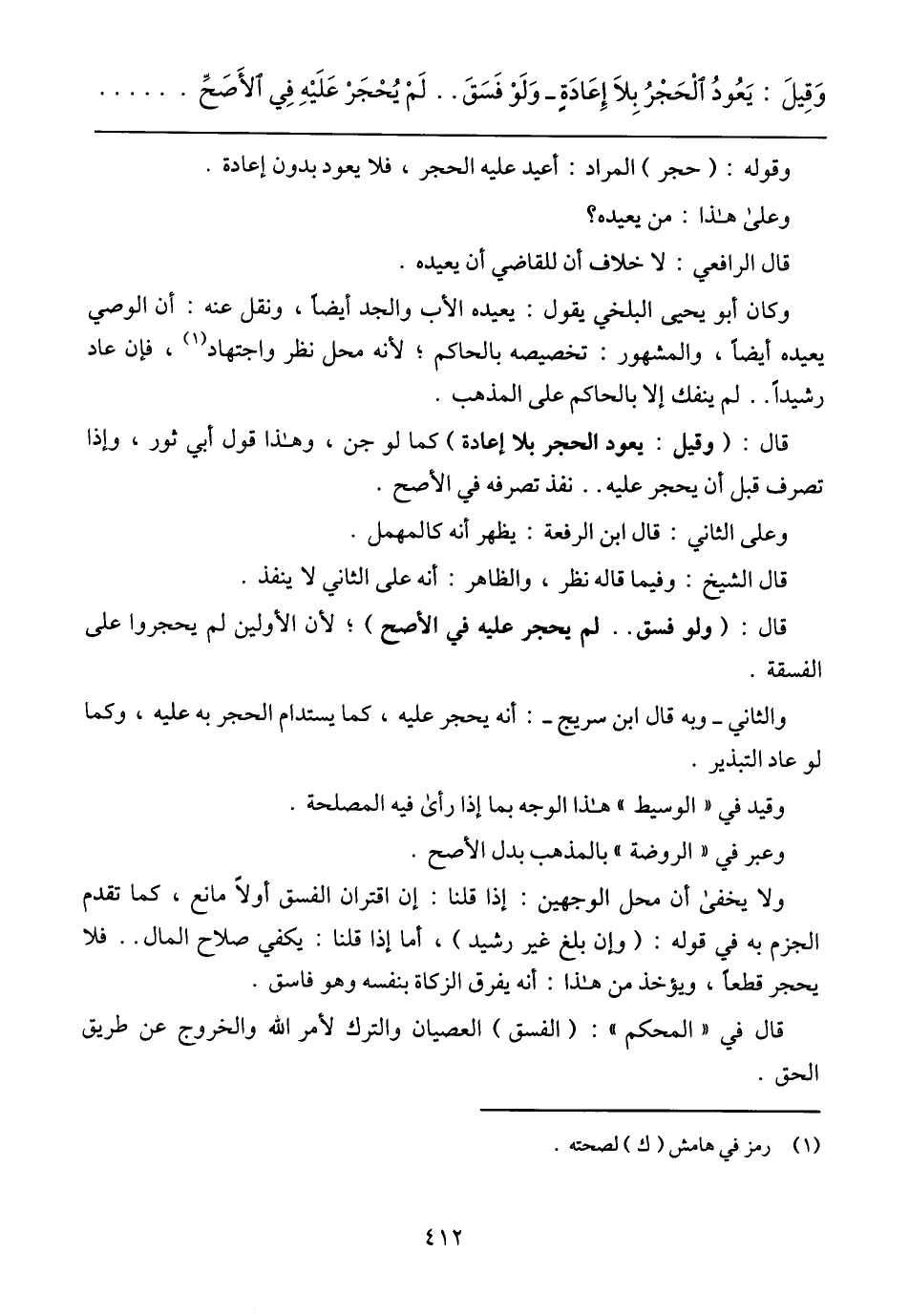 وَقِيلَ: يَعُودُ الْحَجْرُ بِلَا إِعَادَةٍ- وَلَوْ فَسَقَ .. لَمْ يُحْجَرْ عَلَيْهِ فِي الأَصَحِّ