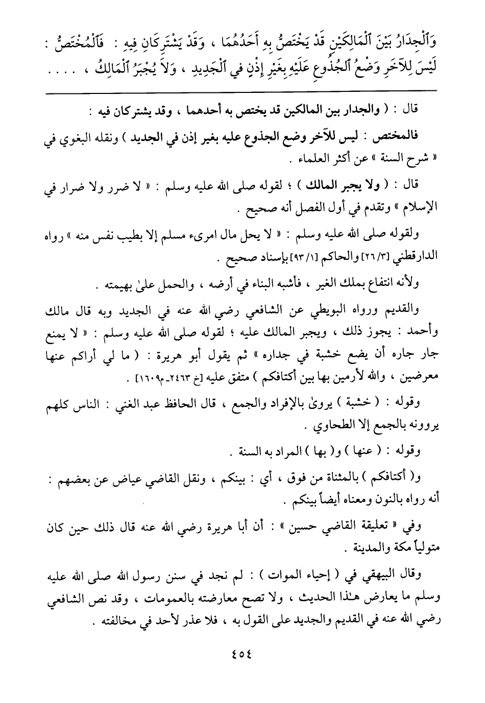 وقال البيهقي في (إحياء الموات): لم نجد في سنن رسول الله صلى الله عليه وسلم ما يعارض هذا الحديث، ولا تصح معارضته بالعمومات، وقد نص الشافعي رضي الله عنه في القديم والجديد على القول به، فلا عذر لأحد في مخالفته.