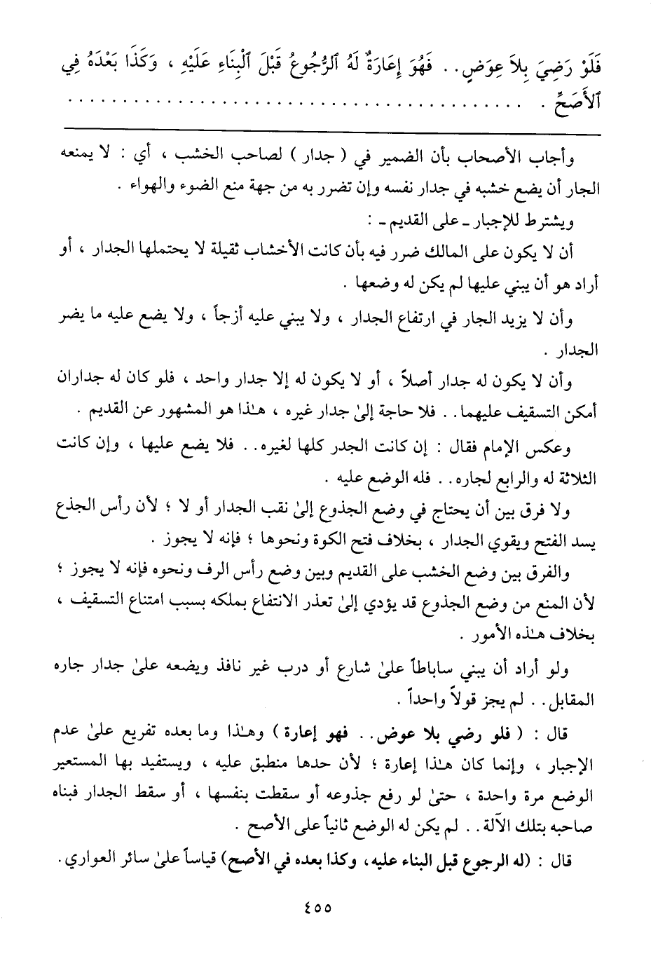 وأن لا يزيد الجار في ارتفاع الجدار، ولا يبني عليه أزجًا، ولا يضع عليه ما يضر الجدار.