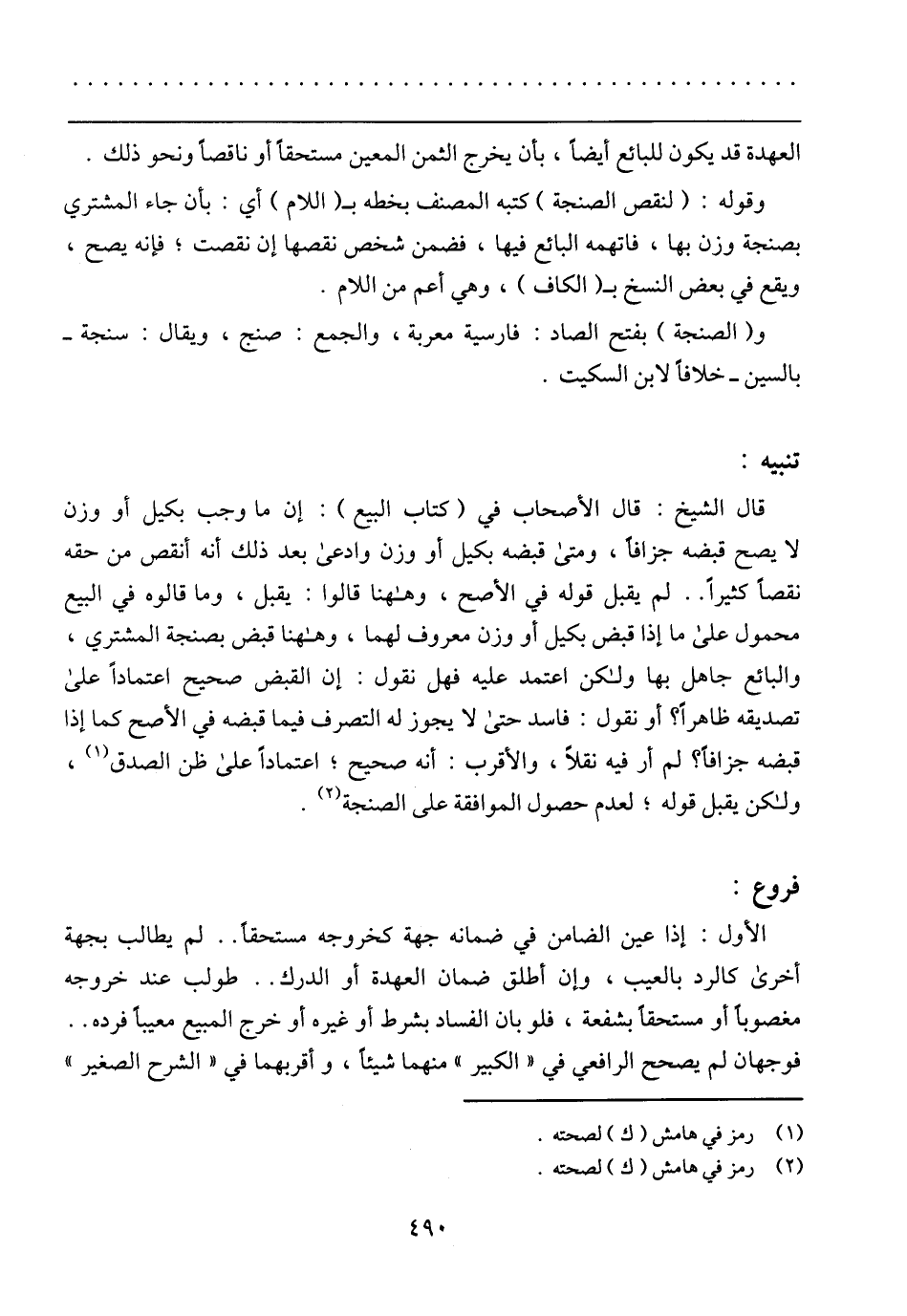 العهدة قد يكون للبائع أيضًا، بأن يخرج الثمن المعين مستحقًا أو ناقصًا ونحو ذلك.