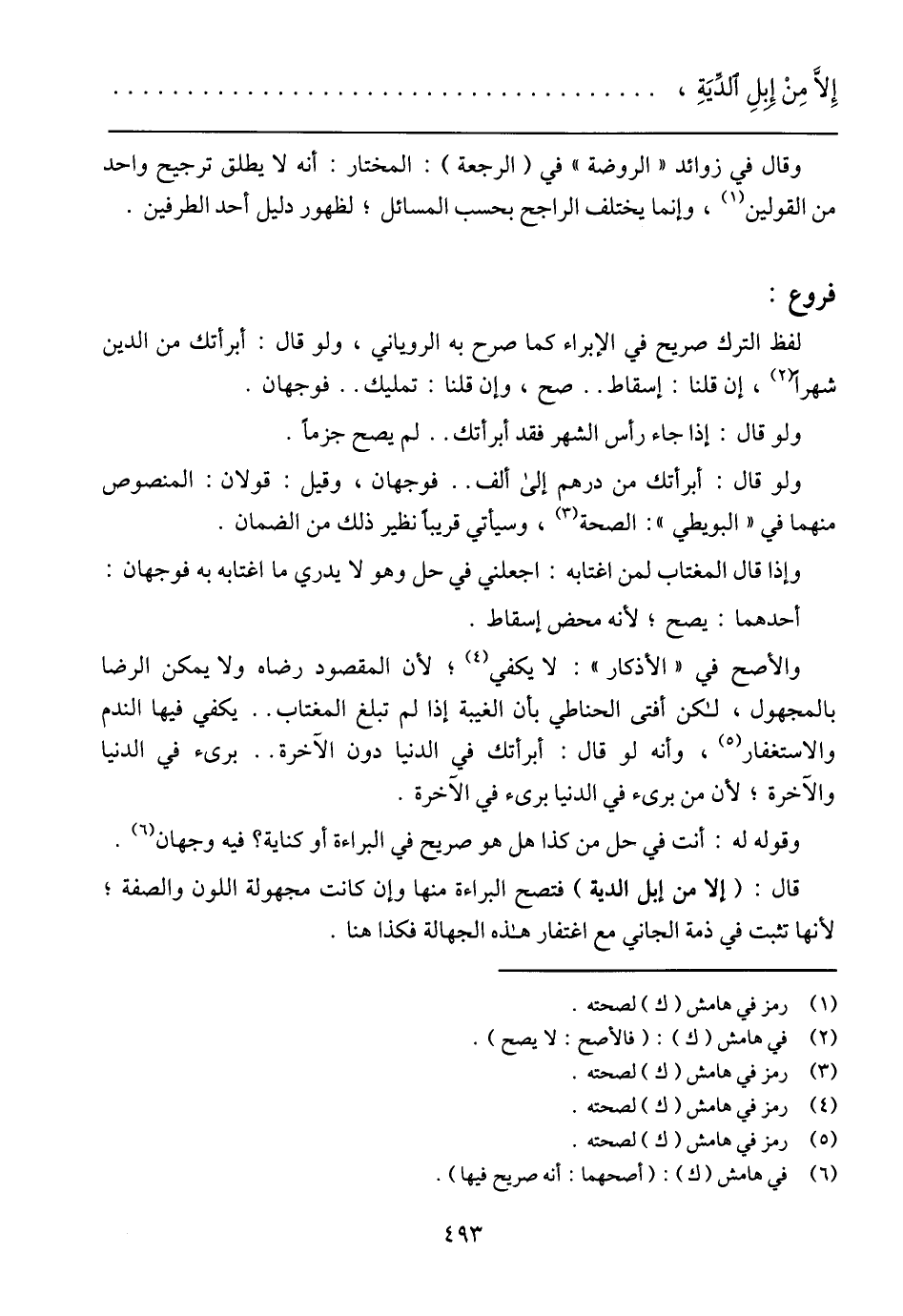 قال: (إلا من إبل الدية) فتصح البراءة منها وإن كانت مجهولة اللون والصفة؛ لأنها تثبت في ذمة الجاني مع اغتفار هذه الجهالة فكذا هنا.
